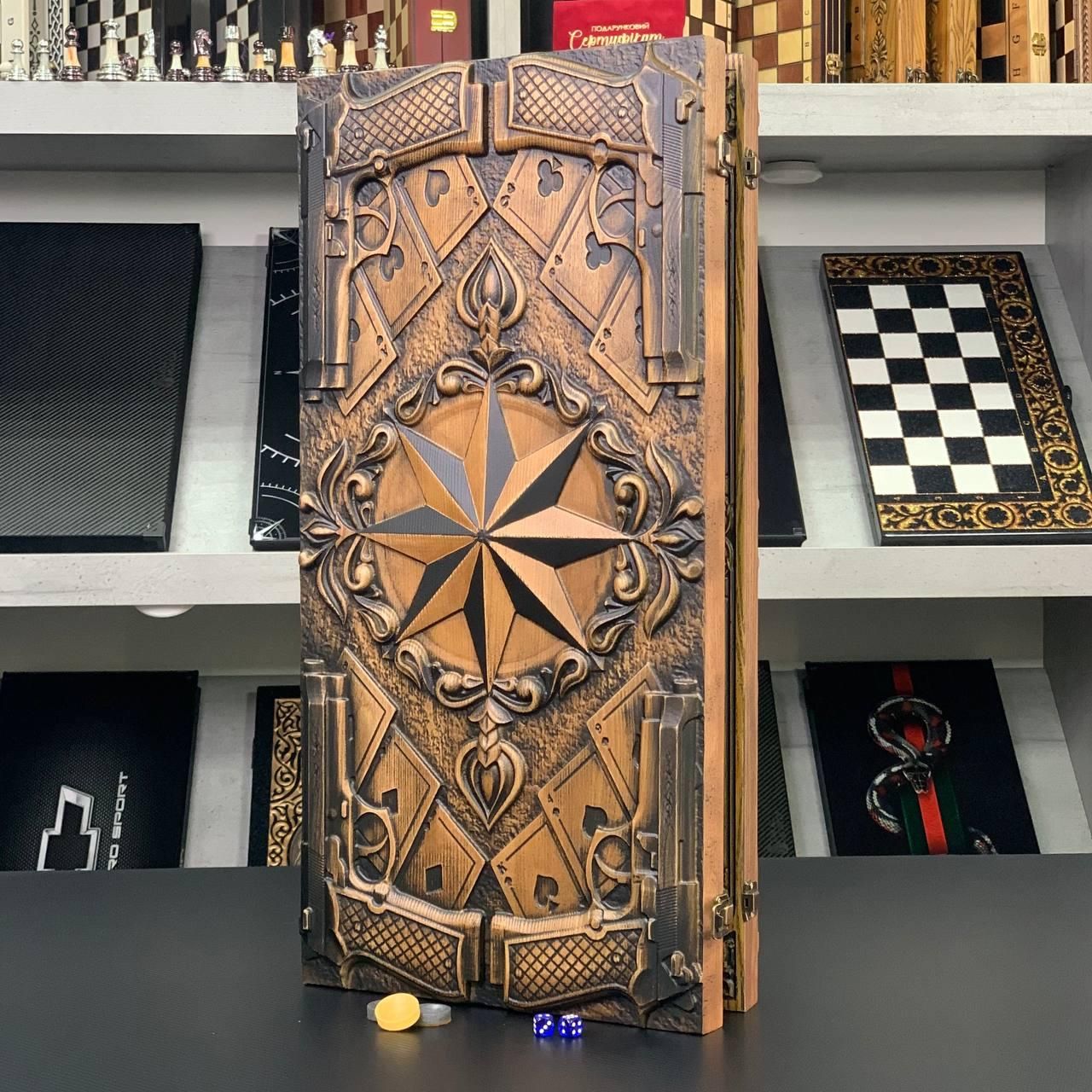 Елітні дерев'яні нарди "Роза вітрів" – ручне різьблення, натуральний ясен Нарди – це не просто настільна гра, а справжнє мистецтво! Ексклюзивні нарди "Роза вітрів", виготовлені з натурального ясена, поєднують традиційний стиль і високу якість. Завдяки майстерному різьбленню по дереву із зображенням культового візерунка "Роза вітрів", вони стануть чудовим доповненням до будь-якої колекції настільних ігор. Особливості нард "Роза вітрів" Ручна робота: унікальне різьблення по дереву Матеріал: натуральний ясен – міцний, довговічний Дизайн: зовнішня частина – "Роза вітрів", внутрішня – класичні візерунки Гра: можливість грати як у довгі, так і в короткі нарди Комплектація: 30 фішок із міцної смоли (15 світлих + 15 темних), 2 кубики Зручні розміри: у складеному вигляді – 64х32 см, у розкладеному – 64х64 см Детальний опис Ці нарди створені для справжніх цінителів! Витончене різьблення, благородний коричнево-бежевий відтінок, якісні фішки з діаметром 23 мм та кубики розміром 10 мм забезпечують комфортну гру. Вага 7,3 кг додає виробу солідності, а якісний лак захищає поверхню від зношування. Технічні характеристики Матеріал: натуральний ясен Колір: коричневий, бежевий Розміри (складені): 64х32 см Розміри (розкладені): 64х64 см Вага: 7,3 кг Фішки: смола, діаметр 23 мм Кубики: розмір 10 мм Комплектація: нарди (1 шт), 30 фішок, 2 кубики Замовляйте прямо зараз! Отримайте ексклюзивні нарди "Роза вітрів", які стануть справжньою окрасою вашої колекції або чудовим подарунком для поціновувачів класичних настільних ігор. Не зупиняйтеся на досягнутому! На нашому сайті представлені й , які зможуть задовольнити будь-які ваші смаки та вподобання. : Це класична гра, яка протягом століть розважає людей всіх віків. : Інтелектуальна гра, яка кине виклик вашому розуму. Аксесуари для настільних ігор: , , та багато іншого, що зробить ваші ігри ще більш комфортними та приємними. Завітайте до нашого і знайдіть ту гру, яка стане вашим новим улюбленим дозвіллям! Залишилися питання? Телефонуйте нам. Наші менеджери завжди на зв'язку і готові відповісти на всі ваші запитання Адреса: Україна м. Стрий, вул. Заньковецької, буд. 2, другий поверх