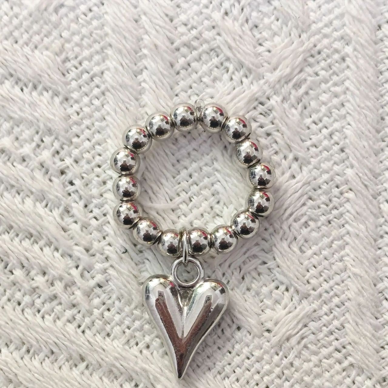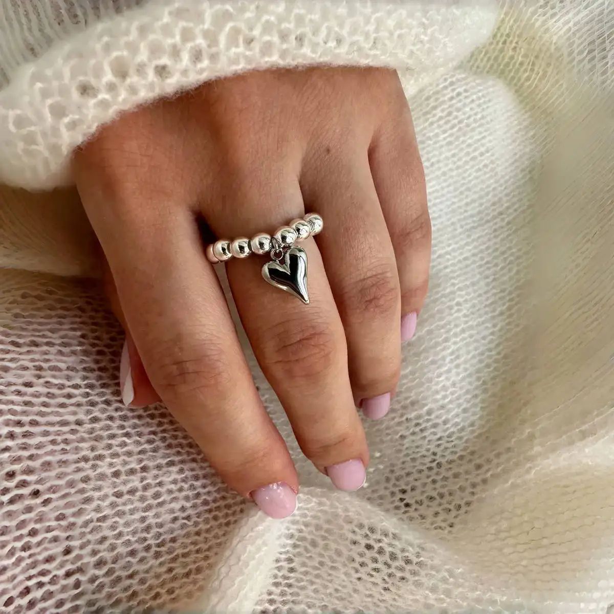 Кільце з сріблястим серцем каблучка у вигляді перлин і серце