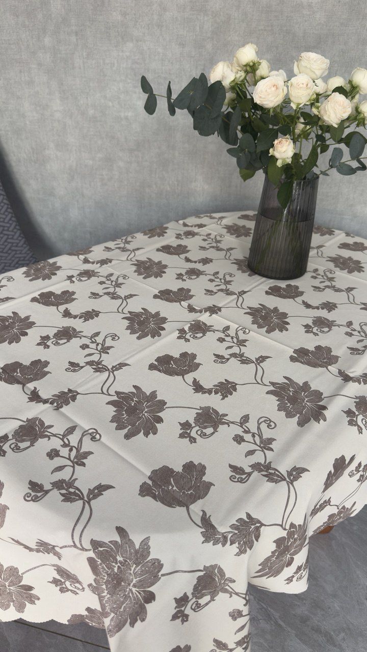 Скатертина Жасмін це сучасний дизайн і зручність у використанні. Виконана з вінілу на тканинній основі, відмінно підійде для щоденного використання , адже догляд за нею - витирати вологою ганчіркою .
