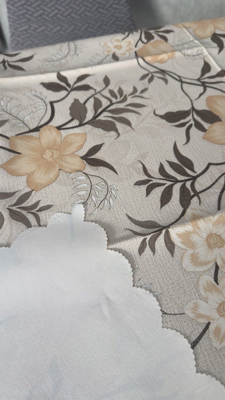 Скатертина Жасмін це сучасний дизайн і зручність у використанні. Виконана з вінілу на тканинній основі, відмінно підійде для щоденного використання , адже догляд за нею - витирати вологою ганчіркою .