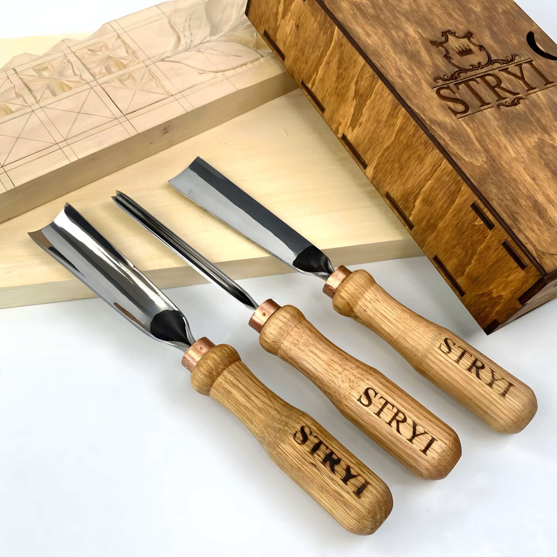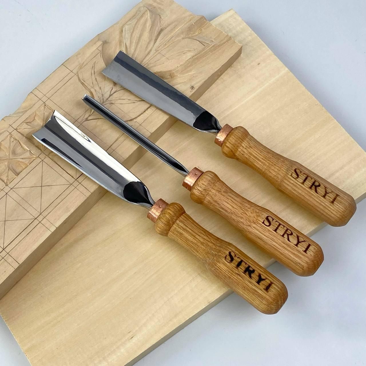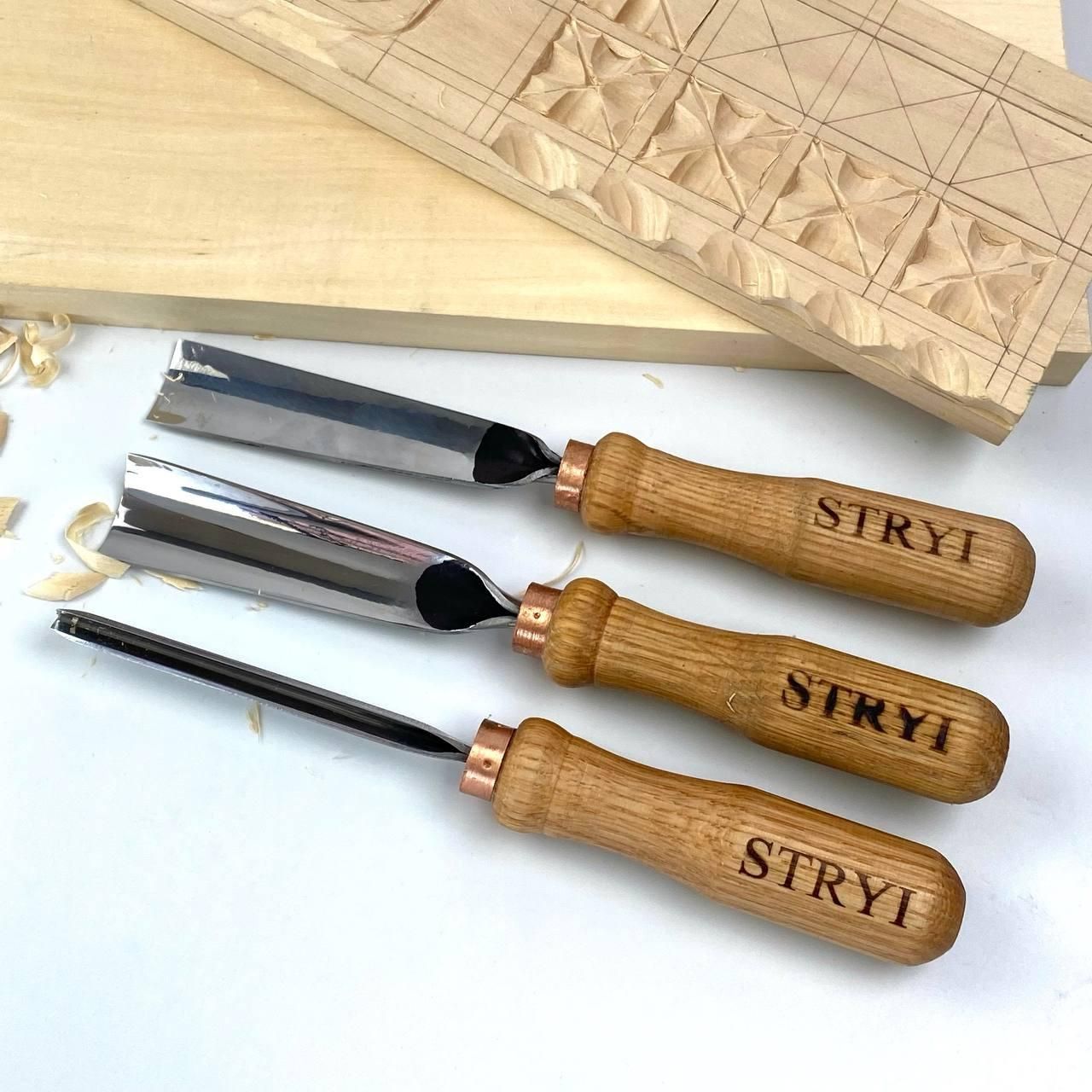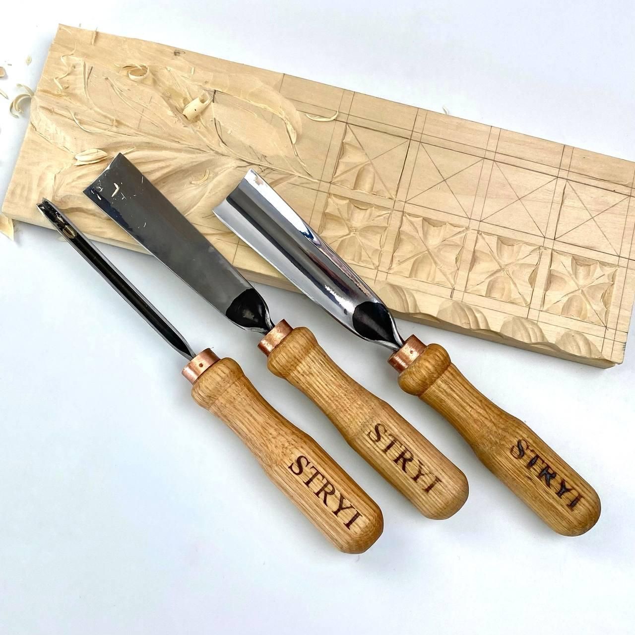 АЮ-STRYI набір стамесок для геометричного різьблення з липовою заготовкою