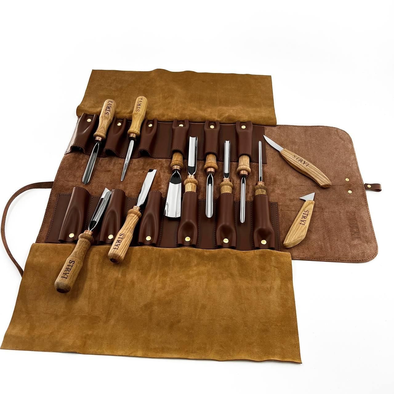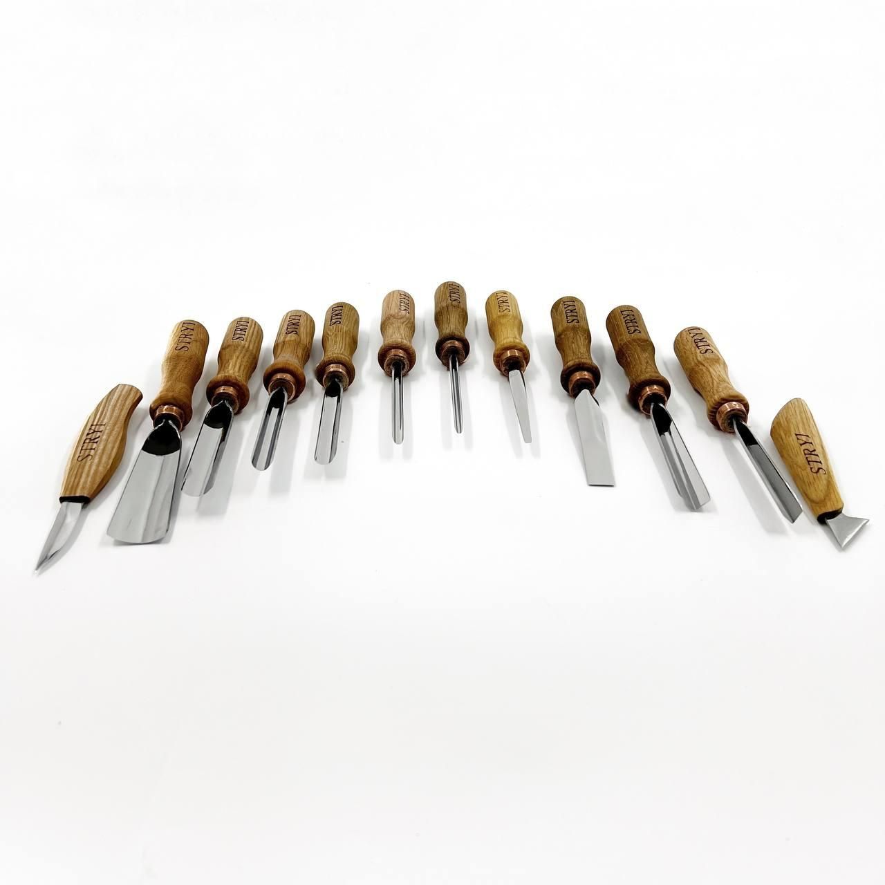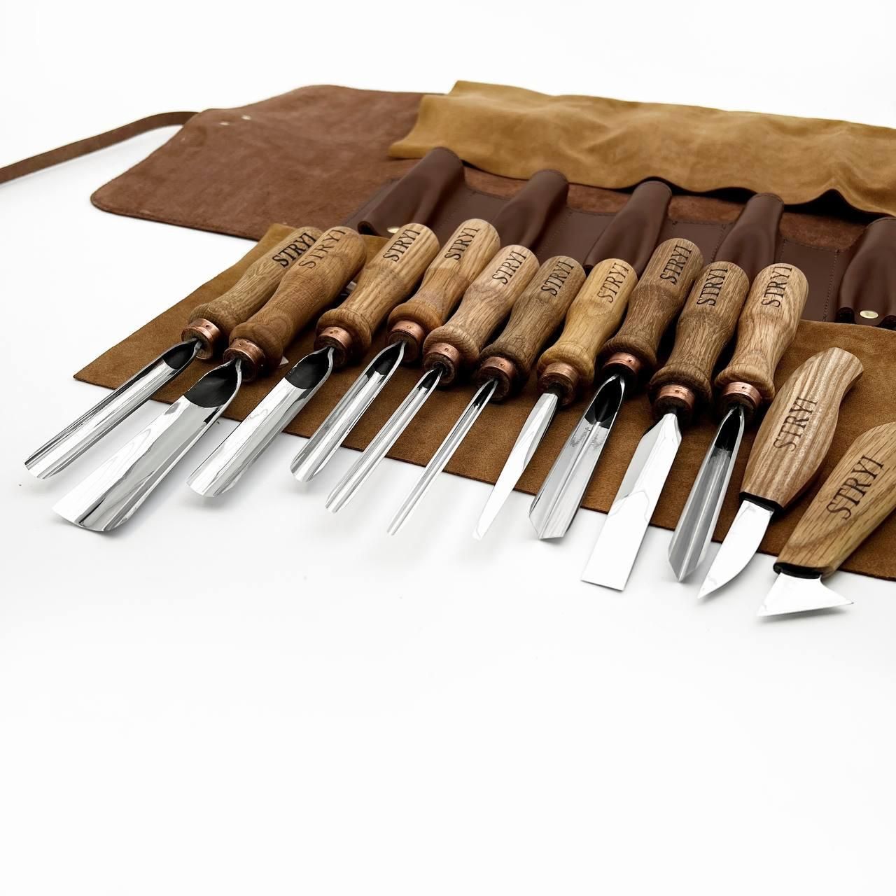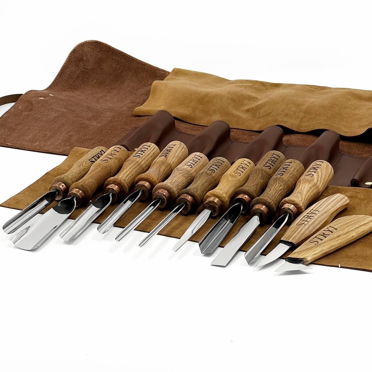 Набір стамесок STRYI Profi для художньої різьби по дереву з 12 шт у шкіряному чохлі