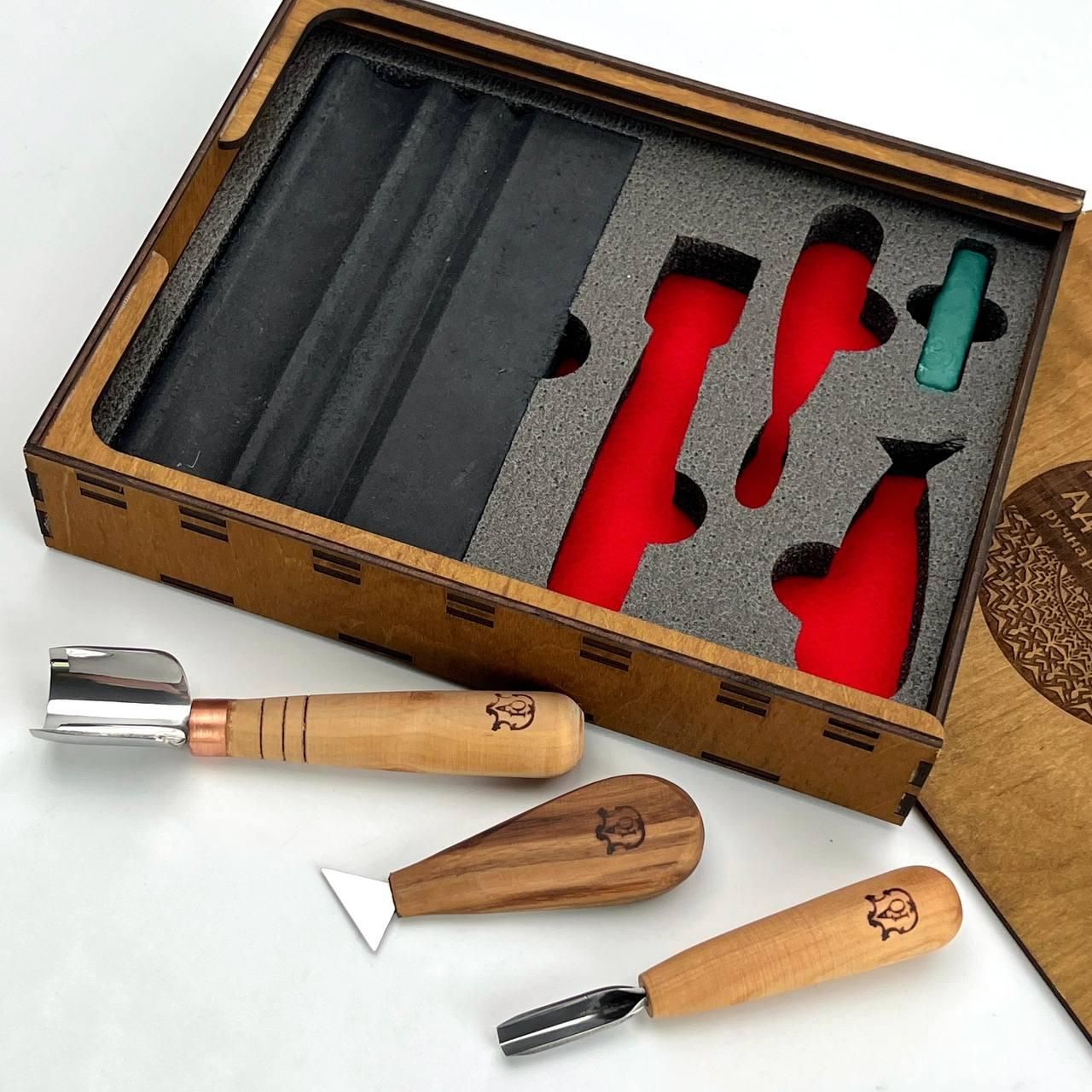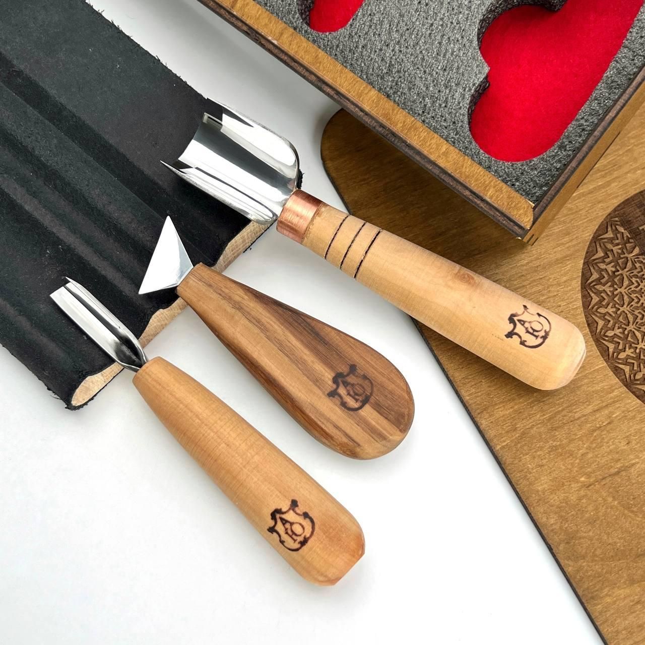 Набір STRYI для вирізання кукси з дерева: 3 інструменти та заготовка з липи