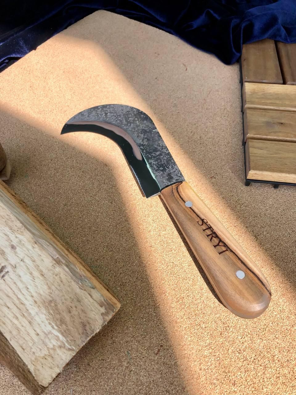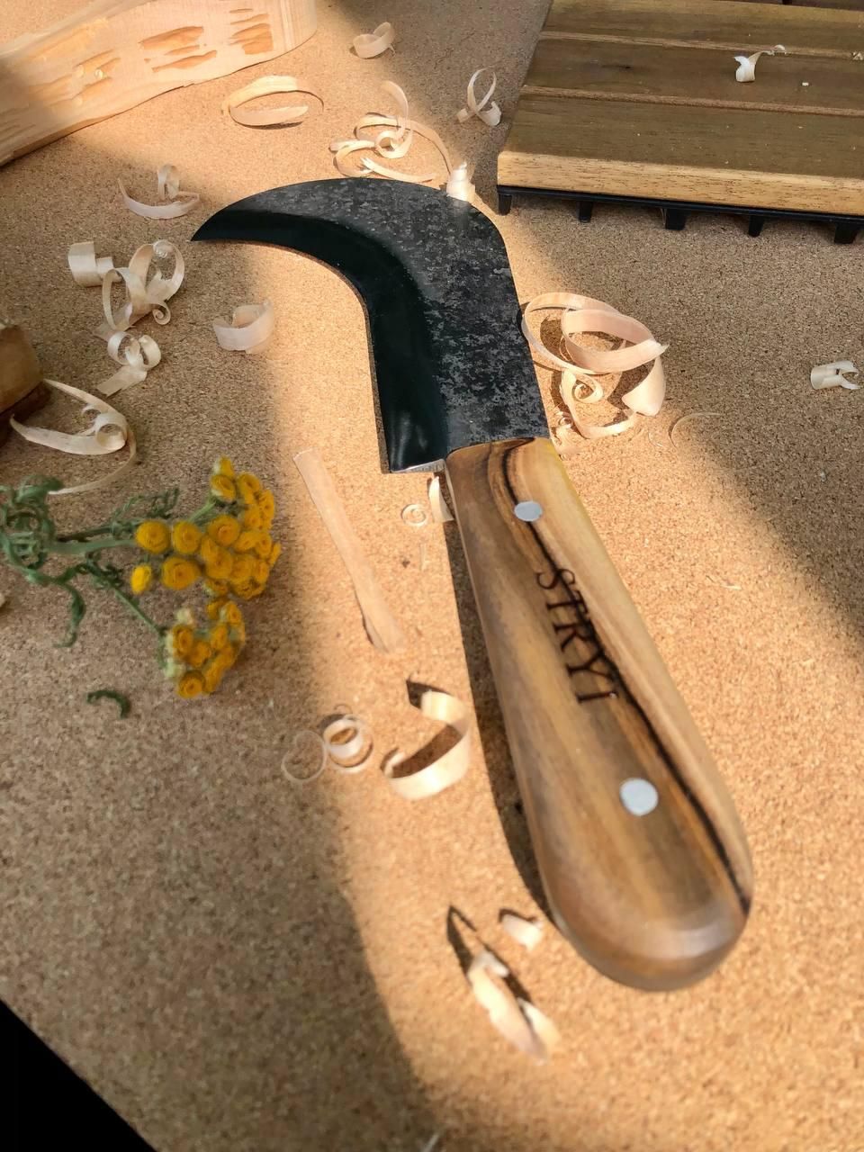Серповидний ніж, мачете, арт. 161611 Мачете є надзвичайно універсальним інструментом, який допомагає вирішувати широкий спектр завдань, починаючи від побутових потреб і закінчуючи важливими завданнями в природних умовах та інших галузях життя. Мисливство: Мачете може бути корисним для різання шляхів через чагарники та забезпечення просунутого доступу для мисливців. Туризм: Мачете корисно при туризмі, допомагаючи вирізати стежки та приготуванні місця для наметів. Вирізання: Використовується для вирізання рослин, особливо в густих джунглях та лісах. Очищення: За допомогою мачете можна очищати траву, чагарники та інші перешкоди. Садіння та обрізання: Використовується для обрізання та саджання дерев та кущів. Деревина застосування: без обмежень, м'яка та тверда порода деревини Вигляд інструменту - серповидний ніж Артикул - 161611 Серія інструменту - STANDART (не полірований) Марка сталі – 65Г Твердість металу за Роквеллом - 58-62HRC Довжина металевої частини – 160 мм. Товщина металу – 5 мм. Наявність заточування - так Матеріал рукояті - дерево, дуб Довжина рукояті - 140 мм. Покриття рукояті - лляна олія Загальна довжина інструменту – 300 мм. Вага інструменту – 530 г Гарантійне обслуговування – весь період експлуатації інструменту (мінімальний період експлуатації 20 років) Контроль кожного процесу виробництва STRYI, а особливо правильна термообробка забезпечує тривалий термін служби інструменту без частого додаткового перезаточування в процесі роботи. Також звертаємо Вашу увагу, що STRYI єдиний виробник, який надає послугу безкоштовного обслуговування інструменту на весь період його експлуатації (реставрація інструменту, повторне заточення або переточування інструменту) Наявність професійного заточування при покупці інструменту дозволяє відразу приступити до роботи з будь-якого виду дерева, а зручна форма рукояті вбереже руки від утоми в процесі тривалого використання. Зробивши покупку у нас, Ви отримуєте: Перед відправкою інструмент перевіряється на заточку, загартування і твердість металу, щоб забезпечити тривалий і комфортне використання інструменту STRYI Вибираючи STRYI, Ви завжди можете розраховувати на допомогу і консультацію. Наші консультанти допоможуть Вам з вибором інструменту, а також завжди врахують Ваші побажання і пропозиції! Щоб подивитися всю лінійку ударних інструментів перейдіть в каталог цієї групи: Залишилися питання? Телефонуйте нам. Наші менеджери завжди на зв'язку і готові відповісти на всі ваші запитання Наші координати: Адреса: Україна м. Стрий, вул. Заньковецької, буд. 2, другий поверх