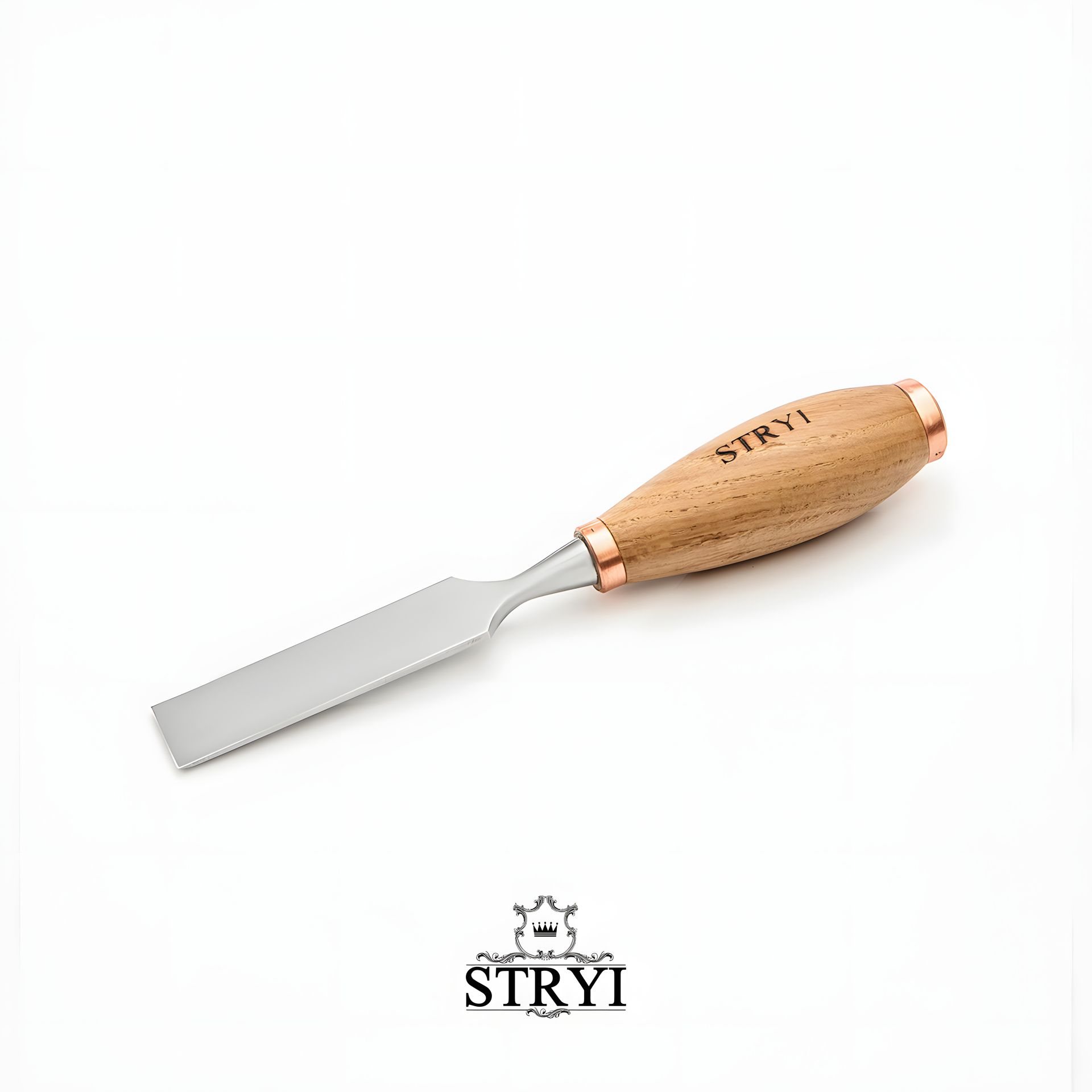 Стамеска столярна 38мм STRYI Profi, арт. 160038 Призначення використання - столярні, об'ємні та скульптурні роботи з дерева із застосуванням киянки або дерев'яного молотка Деревина застосування: без обмежень, м'яка та тверда порода дерева Вид інструменту - стамеска столярна Артикул - 160038 Серія інструментів - PROFI (полірований) Марка сталі – 65Г Твердість металу за Роквеллом - 58-62HRC Ширина ріжучої кромки – 38 мм. Довжина металевої частини – 140 мм. Товщина металу – 5 мм. Наявність заточування - так Матеріал рукояті - дерево, дуб Довжина рукояті - 140 мм. Покриття рукояті - лляна олія Наявність обмежувальних кілець для посилення рукояті - так Загальна довжина інструменту – 280 мм. Вага інструменту – 260 Гарантійне обслуговування – весь період експлуатації інструменту (мінімальний період експлуатації 20 років) Контроль кожного процесу виробництва STRYI, а особливо правильна термообробка забезпечує тривалий термін служби інструменту без частого додаткового перезаточування в процесі роботи. Також звертаємо Вашу увагу, що STRYI єдиний виробник, який надає послугу безкоштовного обслуговування інструменту на весь період його експлуатації (реставрація інструменту, повторне заточення або переточування інструменту) Наявність професійного заточування при покупці інструменту дозволяє відразу приступити до роботи з будь-якого виду дерева, а зручна форма рукояті вбереже руки від утоми в процесі тривалого використання. Зробивши покупку у нас, Ви отримуєте: Перед відправкою інструмент перевіряється на заточку, загартування і твердість металу, щоб забезпечити тривалий і комфортне використання інструменту STRYI Вибираючи STRYI, Ви завжди можете розраховувати на допомогу і консультацію. Наші консультанти допоможуть Вам з вибором інструменту, а також завжди врахують Ваші побажання і пропозиції! Щоб подивитися всю лінійку столярних інструментів перейдіть в каталог цієї групи: Залишилися питання? Телефонуйте нам. Наші менеджери завжди на зв'язку і готові відповісти на всі ваші запитання Наші координати: Адреса: Україна м. Стрий, вул. Заньковецької, буд. 2, другий поверх