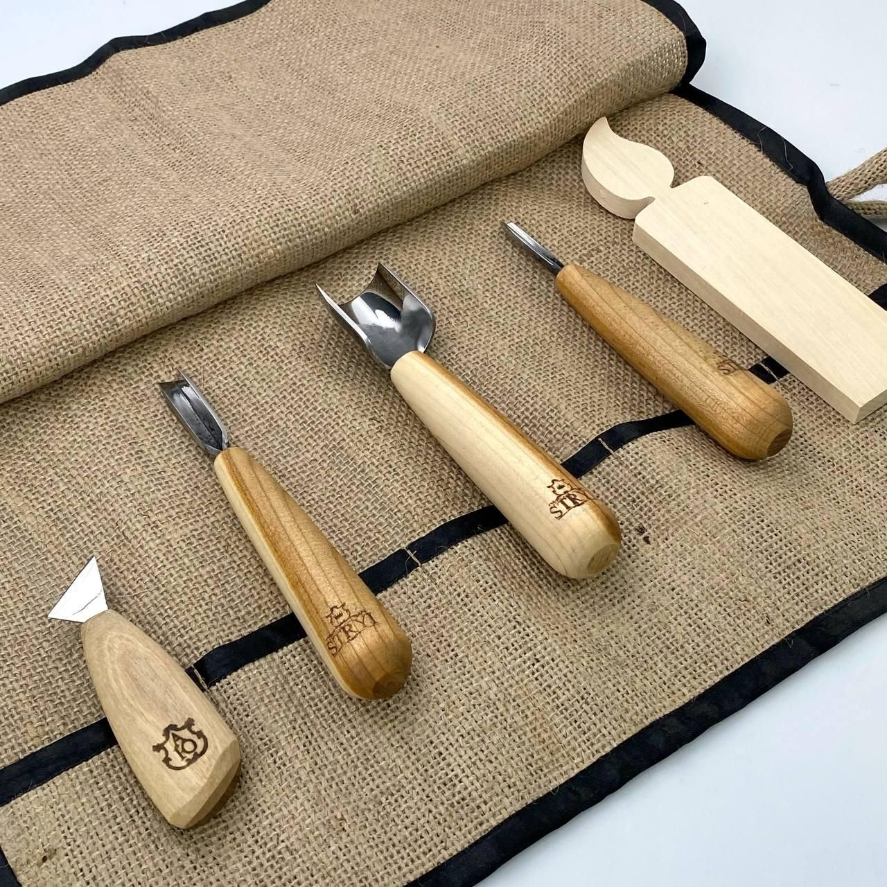 Набір STRYI для вирізання кукси з дерева: 3 інструменти та заготовка з липи