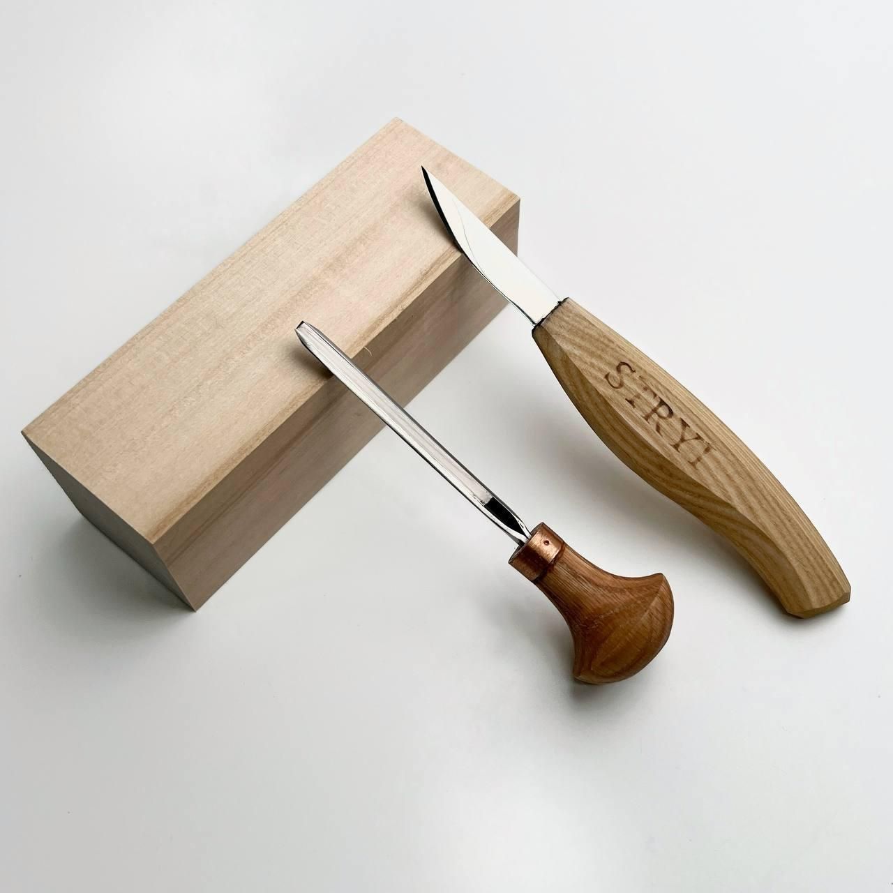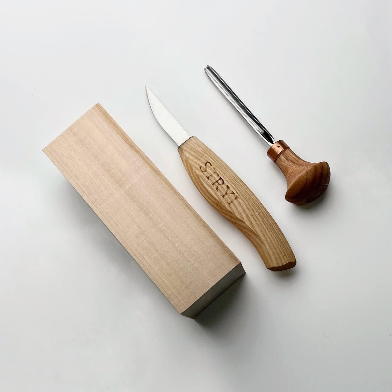 Набір STRYI для вирізання кукси з дерева: 3 інструменти та заготовка з липи
