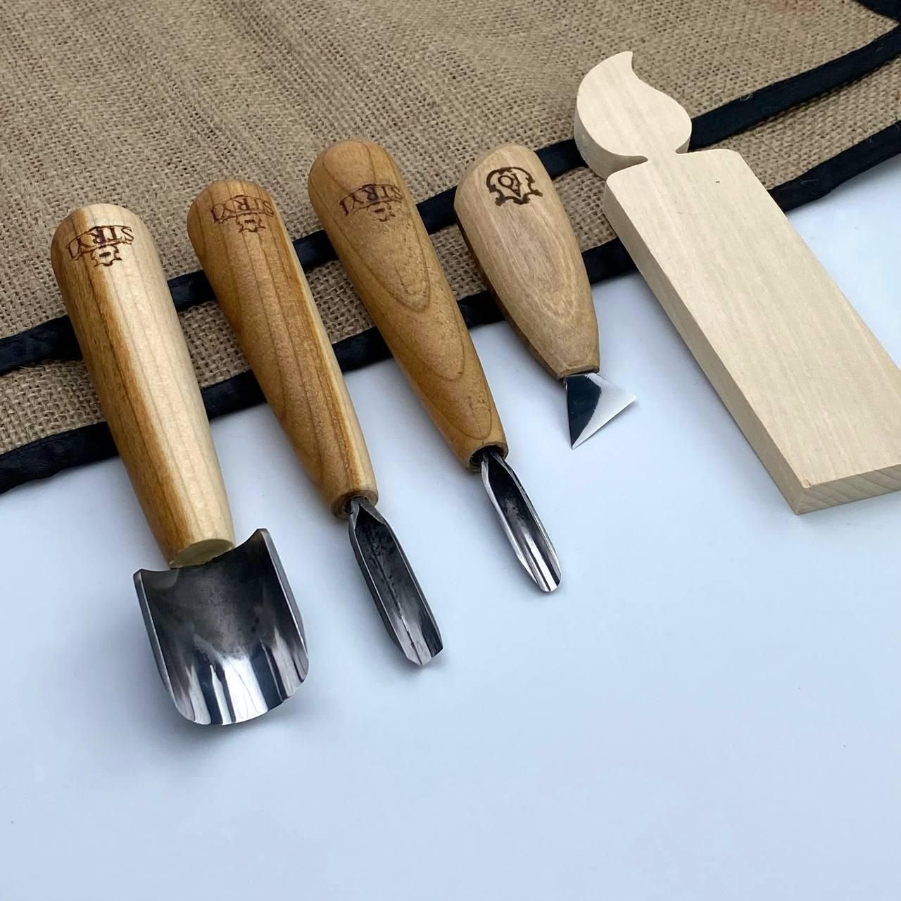 Набір STRYI для вирізання кукси з дерева: 3 інструменти та заготовка з липи