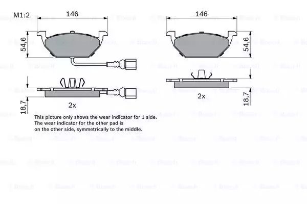 Колодки гальмівні VOLKSWAGEN 1J0698151D, SKODA 1K0698151F, BOSCH (0986494524)