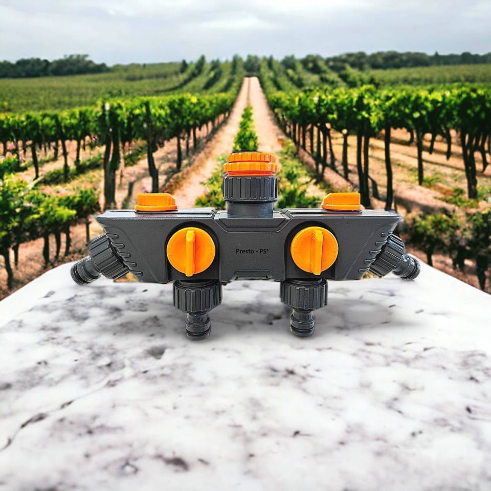 Кран шаровий на 4 виходи Presto-PS (5010) застосовується в комбінації зі стандартними конекторами для побудови систем поливу з використанням гнучких садових шлангів та дощувачів. Дає змогу швидко та надійно під'єднати чотири гілки поливу до одного джерела водопостачання. Процес монтажу не займає багато часу і не вимагає великих зусиль. Кран виготовлений з якісного пластику, довговічний, стійкий до впливу ультрафіолету та розчинів добрив.