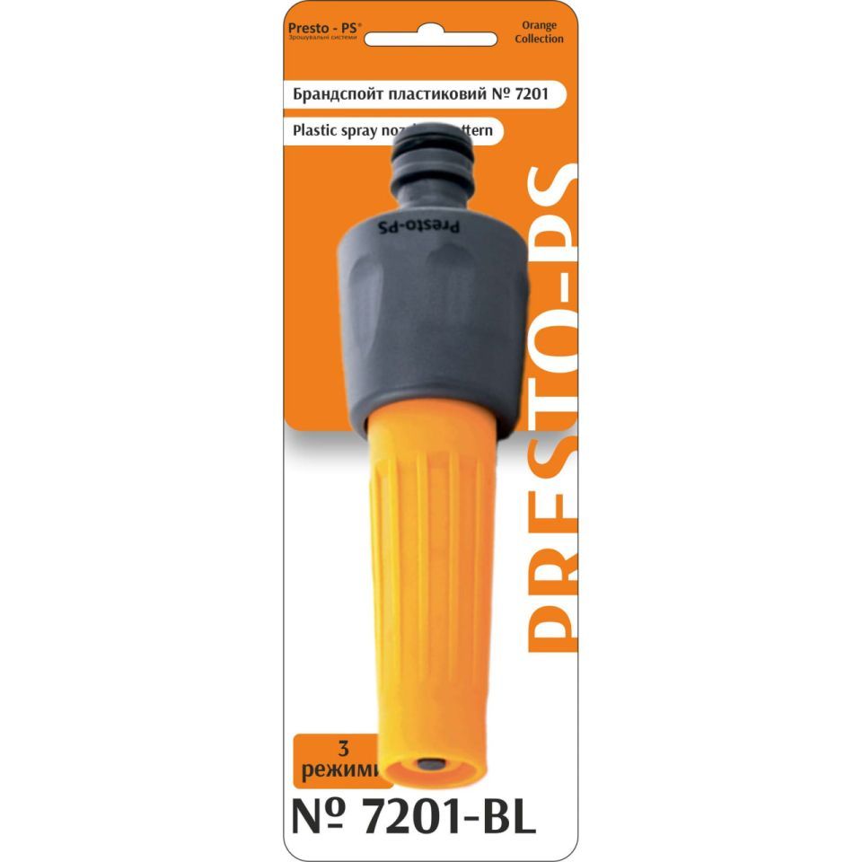 Пістолет для поливу брандспойт Presto-PS (7201-BL) використовується для ручного поливу газонів невеликої площі, міст, квітників, прибирання доріжок на прибудинковій території, миття садового інвентарю та техніки. Поворотна головка пістолета має 3 положення та регулює форму струменя та ступінь розпилення води. Можливий режим роботи: струмінь, конус, туман. Підключається до садових шлангів діаметром 1/2, 5/8 та 3/4 дюйма за допомогою стандартних конекторів. Рекомендований робочий тиск у системі від 2 до 4 атмосфер. Виготовлений поливальний пістолет із пластику, стійкий до механічних пошкоджень, впливу ультрафіолету та водорозчинних удобрень.