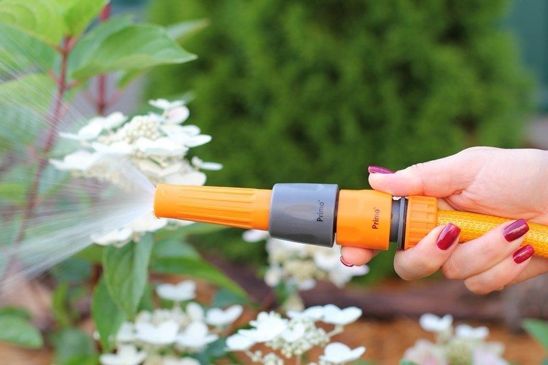 - Підключити гнучкий садовий шланг через кран до джерела водопостачання;