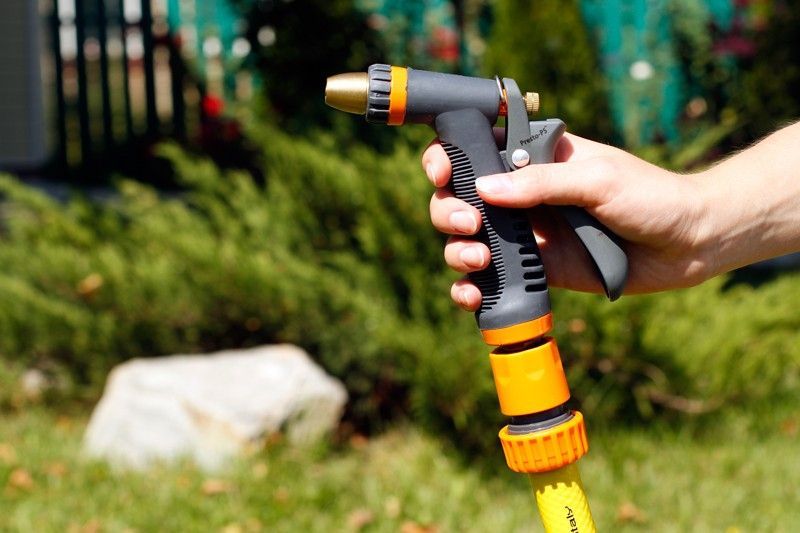 - Підключити гнучкий садовий шланг через кран до джерела водопостачання;