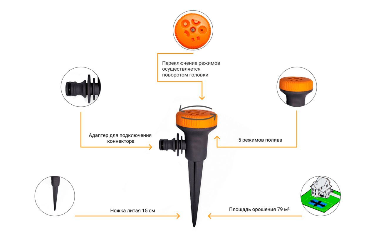 - Встановити зрошувач на місце поливу;