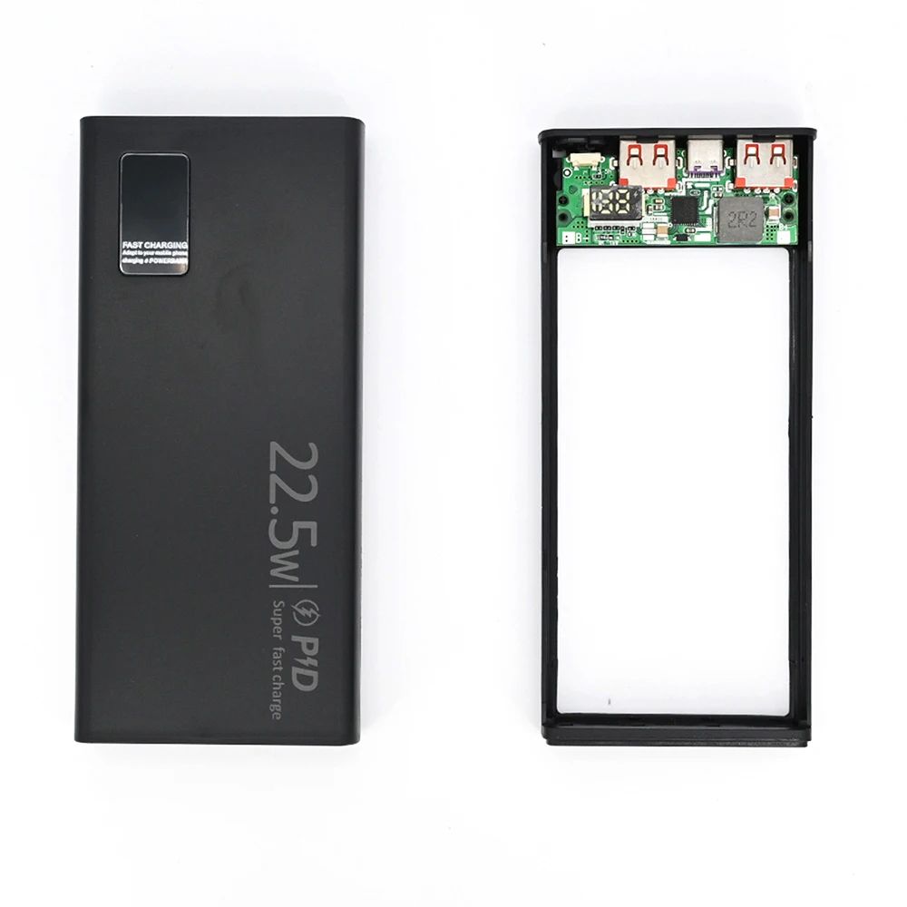 Корпус повербанка DIY Pro під паяння АКБ 2x1260110 до 20000mAh PD 22.5W Type-C, MicroUS, USB-A Black