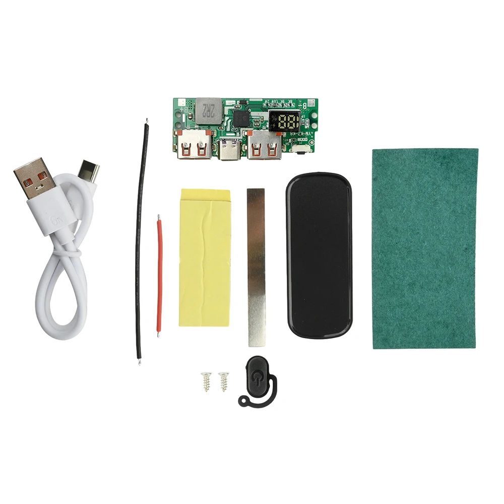 Це комплект для самостійного складання зовнішнього акумулятора з цифровим дисплеєм та підтримкою швидкого заряджання до 22.5 Вт. Призначений для встановлення двох літій-полімерних акумуляторів формату 1260110 (3.7) з паралельним підключенням.