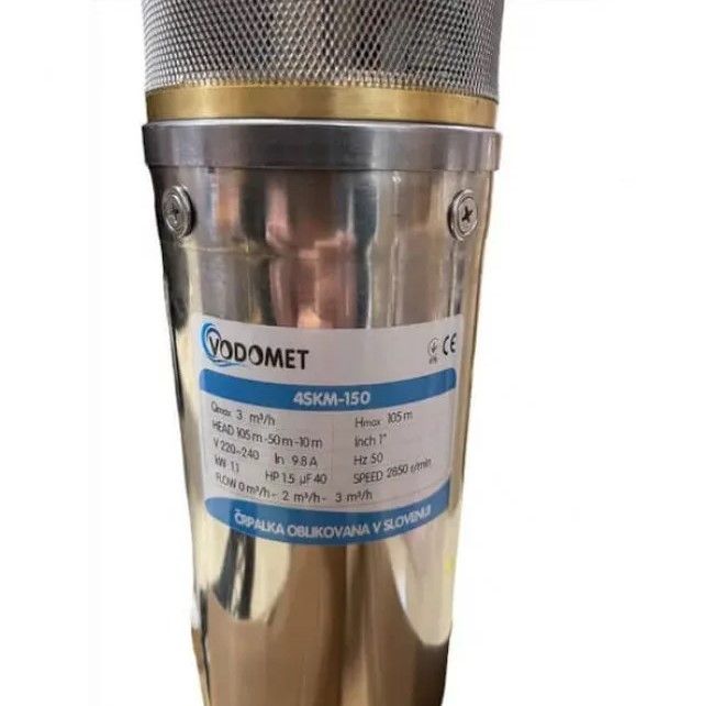 Свердловинний насос VODOMET 4SKM-150 — призначений для подавання чистої води зі свердловин, колодязів і відкритих вод. Можна використовувати насоси цієї серії в системах автономного водопостачання будинків, поливу, дач і малих ферм. Завдяки простоті конструкції, ремонтопридатності за невеликої вартості чудово зарекомендували себе на ринку України.