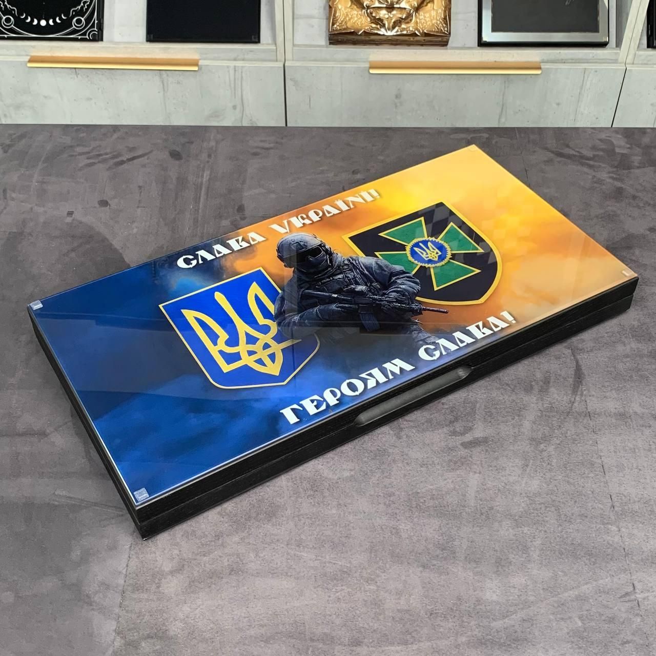 Патріотичні нарди з дерева Збройні Сили України 60×28смНарди дерев'яні Герб 60×28см нарди довгі та нарди кокроткі