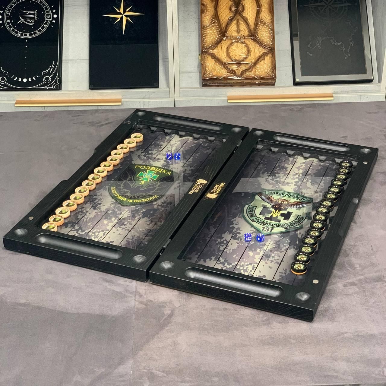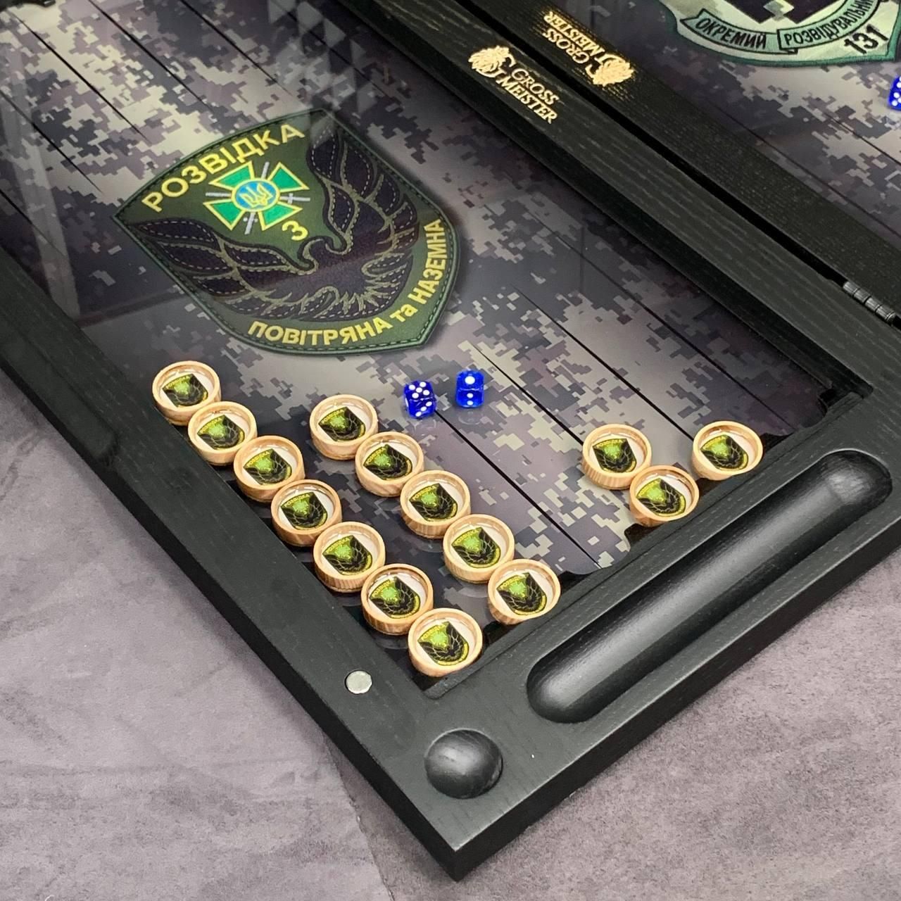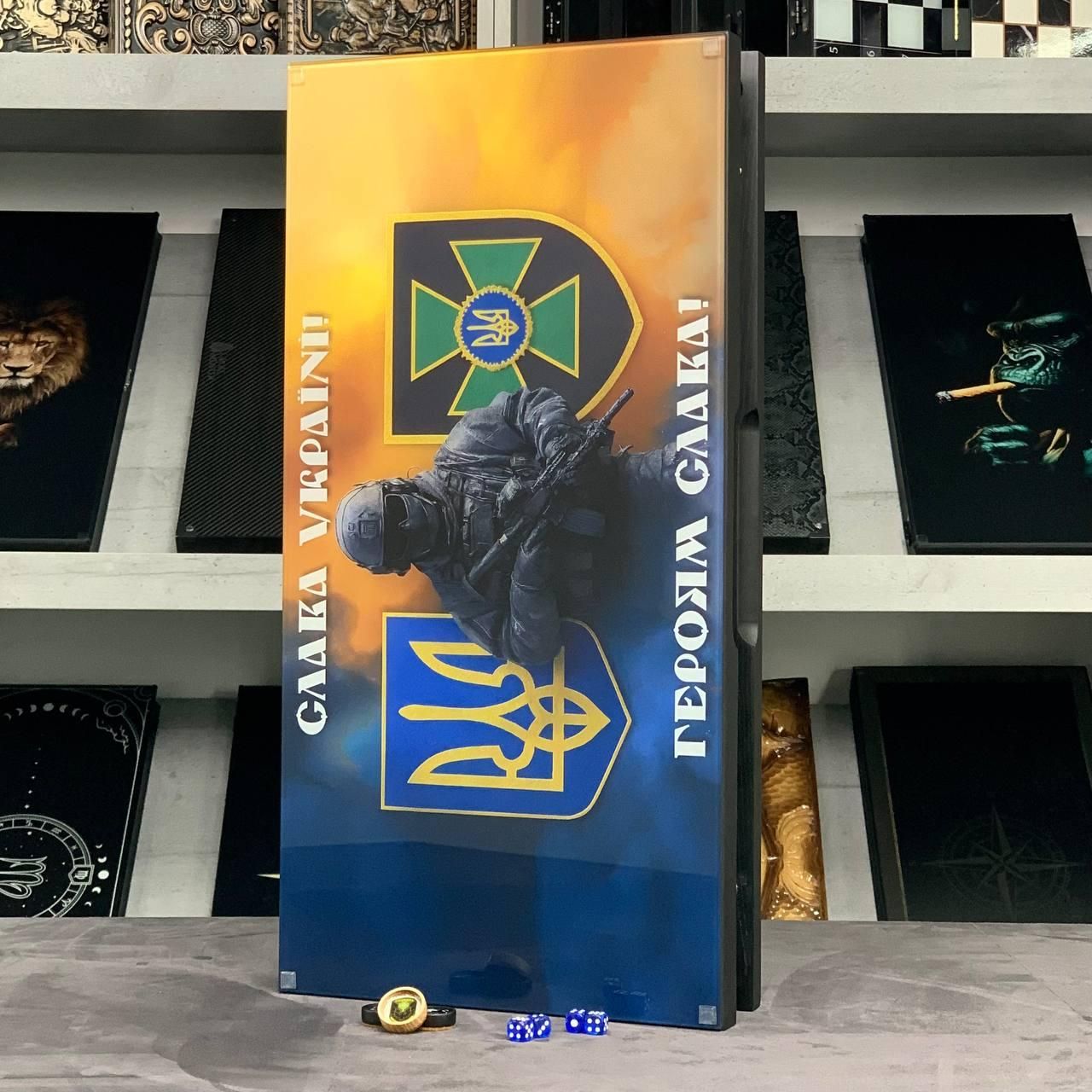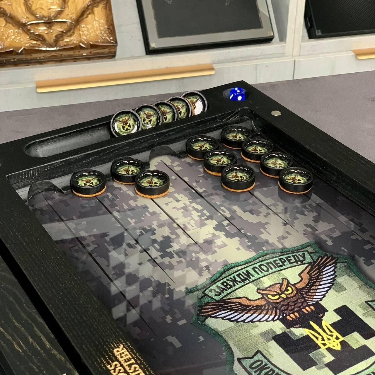 Шукаєте подарунок, який вразить з першого погляду? Ці патріотичні нарди — це не просто настільна гра, а статусний аксесуар, що поєднує в собі багатовікові традиції та сучасні технології. Виконані з натурального дерева та преміального скла, вони стануть центральним елементом інтер'єру або цінним презентом для керівника, друга чи близької людини. Завдяки солідному розміру 60х30 см та значній вазі у 7 кг, набір відчувається в руках як дорога, якісна річ. Скляне ігрове поле забезпечує ідеально гладке ковзання фішок, перетворюючи кожну партію на справжнє задоволення. Особливості та переваги товару Матеріали преміум-класу: Міцний каркас із відбірного дерева та ігрове поле з товстого скла. Стійкий УФ-друк: Патріотичний малюнок нанесений методом ультрафіолетового друку — він не вигорає на сонці та не стирається з роками. Ексклюзивні фішки: Дерев'яні фішки, залиті епоксидною смолою, поєднують приємну важкість та естетичний вигляд. Патріотичний дизайн: Можливість нанесення герба, карти України або будь-якого іншого символу, що підкреслює національну ідентичність. Повна персоналізація: Ми можемо додати ваше ім'я, логотип або особливе привітання на зовнішню чи внутрішню частину нард. Детальні характеристики Цей набір створений для тих, хто не йде на компроміси з якістю. Вага 7 кг гарантує стійкість на поверхні, а дерев'яний каркас захищає скло від пошкоджень. Параметр Значення Розмір у розкладеному вигляді 60 х 30 х 6 см Матеріал корпусу Натуральне дерево Ігрове поле Скло з УФ-друком Фішки Дерево + ювелірна смола Вага 7 кг Тематика Патріотична / Персональна Виробництво Україна (ручна робота) Як замовити персоналізацію? Ви можете зробити цей набір єдиним у світі! Ми пропонуємо: Зміну малюнка на ігровому полі. Індивідуальний підбір кольорів. Зв'яжіться з нами для уточнення деталей: (Viber/Telegram). Ми допоможемо втілити вашу ідею в життя! Залишилися питання? Телефонуйте нам. Наші менеджери завжди на зв'язку і готові відповісти на всі ваші запитання Адреса: Україна м. Стрий, вул. Заньковецької, буд. 2, другий поверх