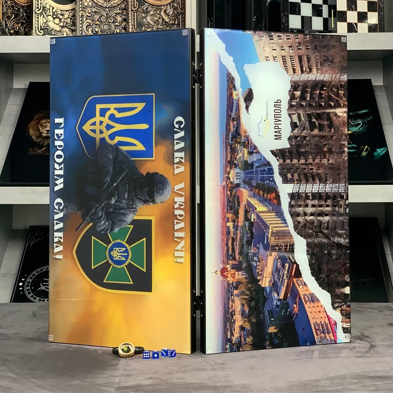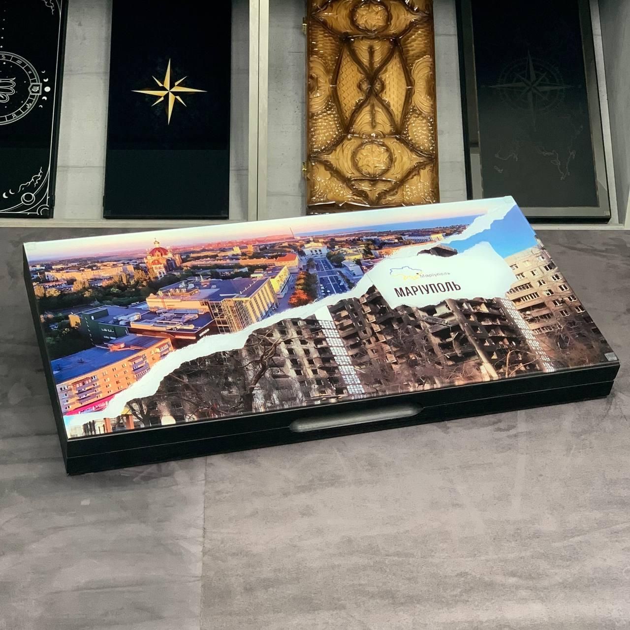 Патріотичні нарди зі скла Маріуполь 60х30см