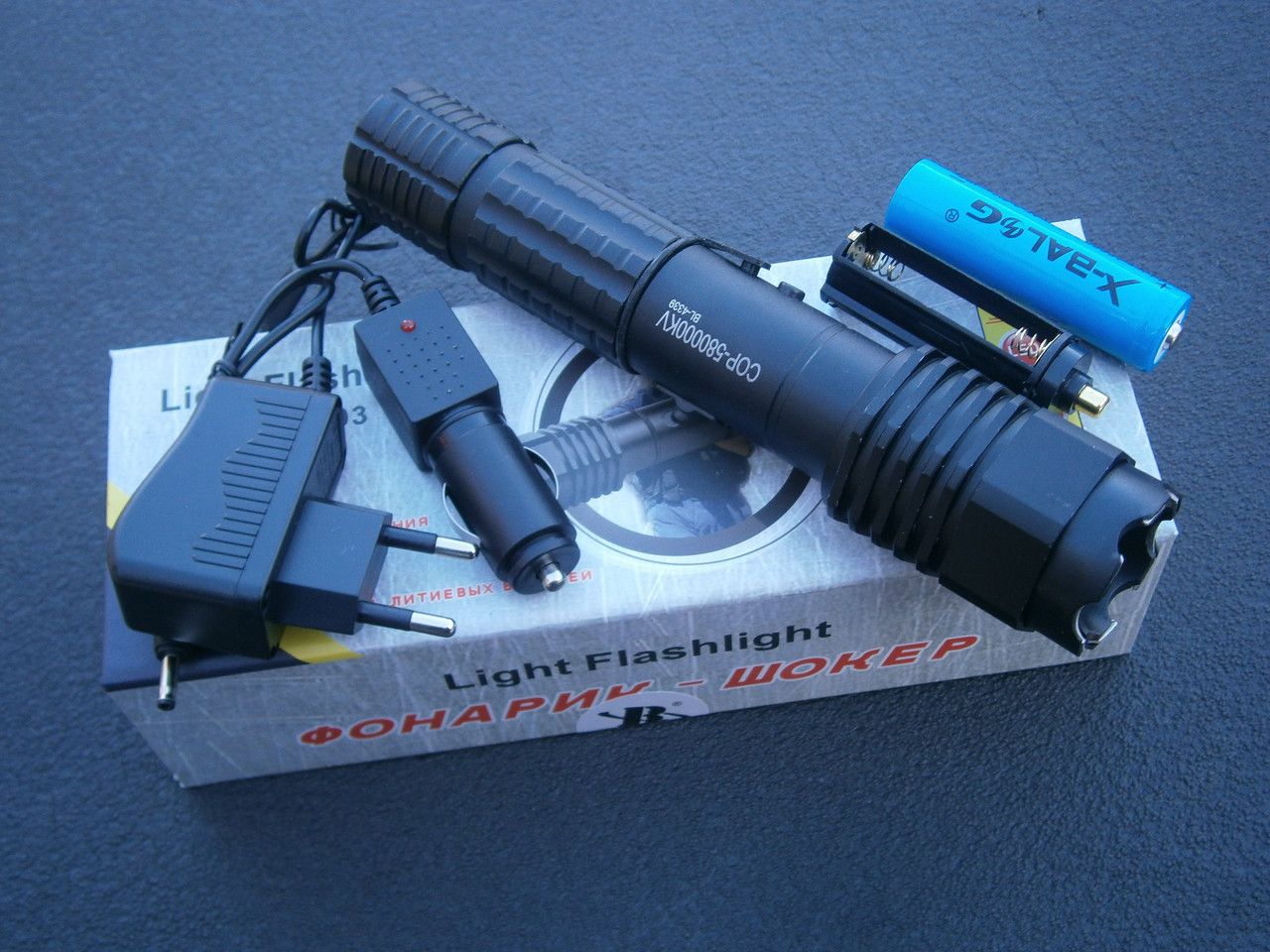 Ліхтар Police BL-4339 СОР 580000КV / акумулятор Li-ion 18650 / microUSB / автозарядка / металевий / 18,5 см
