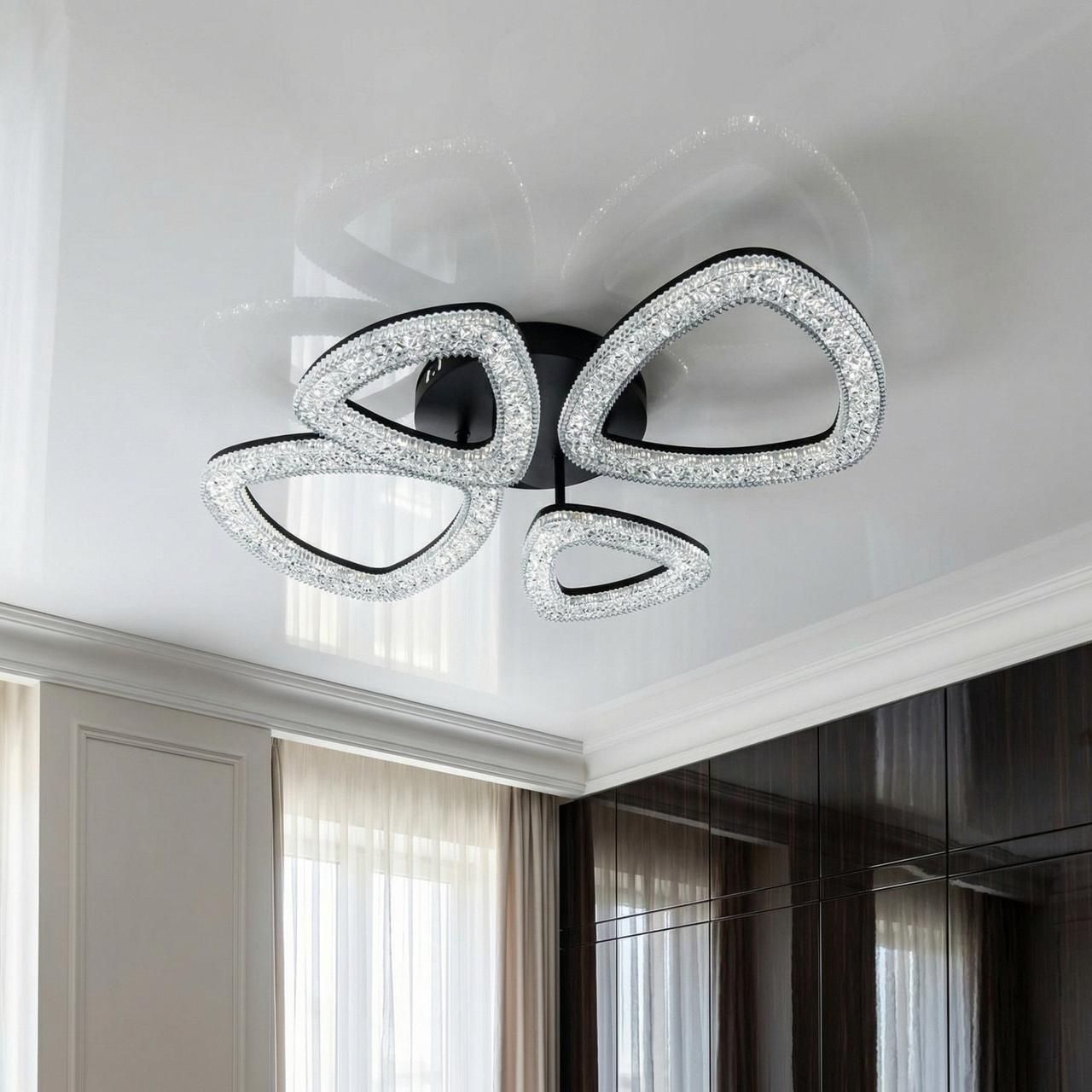 Стельова люстра з акрилу 6633/2+2BK — світлодіод, пульт дистанційного керування, чорний колір, для освітлення до 12 квадратних метрів