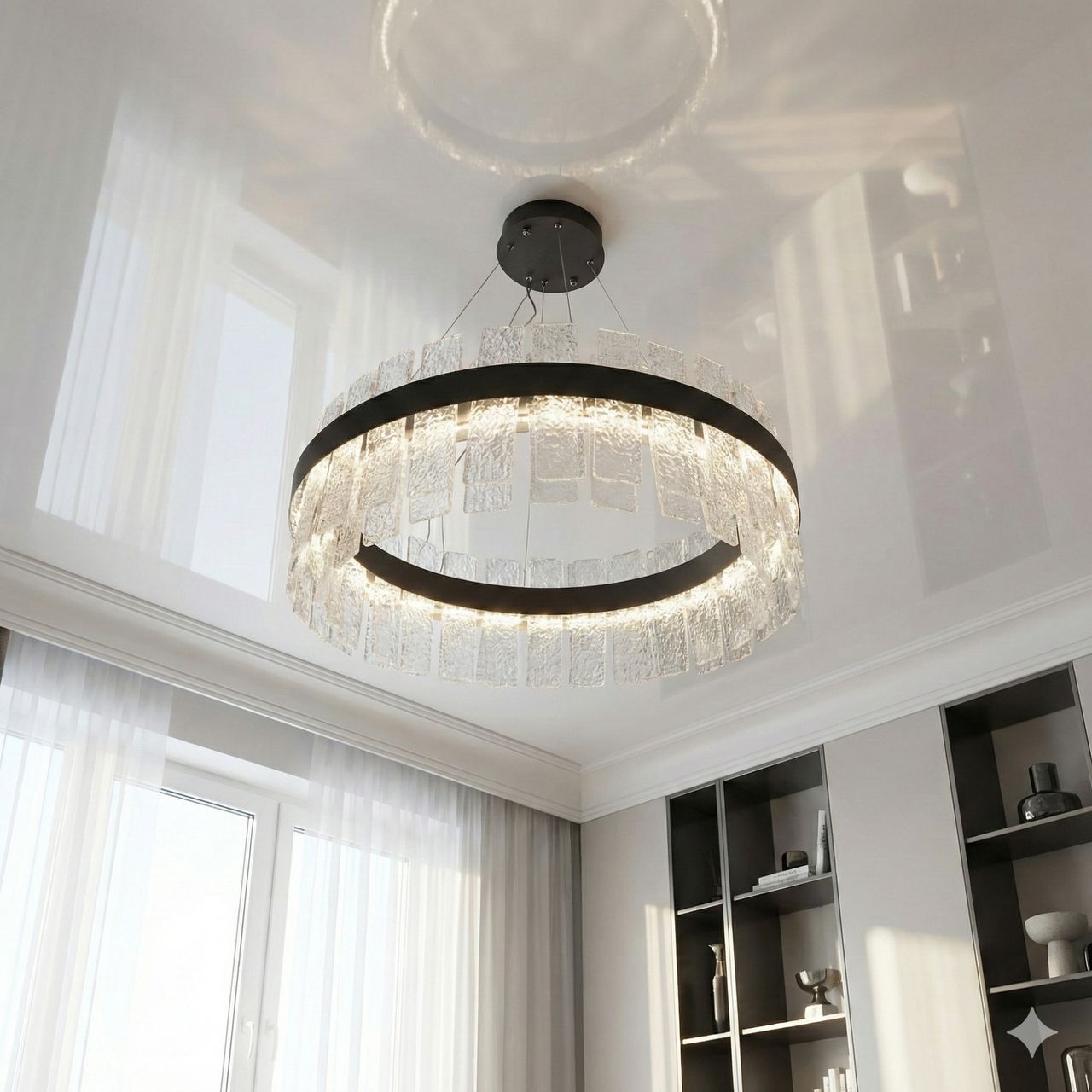 Льодяна люстра кільця фактурний акрил Diasha 140W до 20 м² колір Чорний D8748-600+400BK