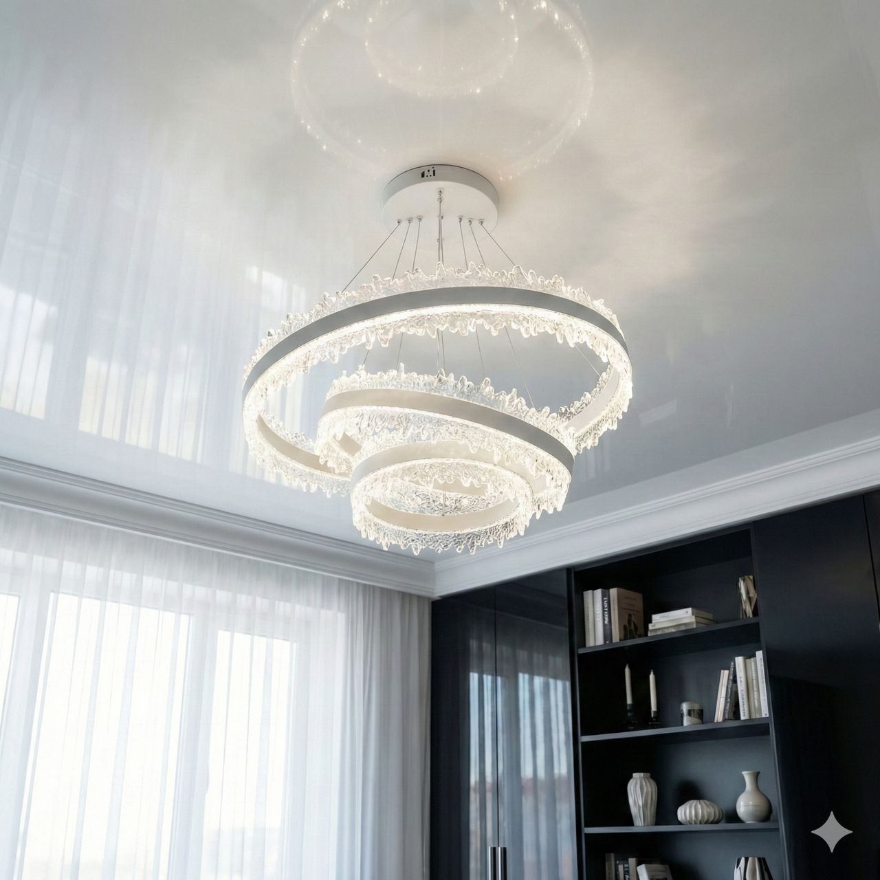Льодяна люстра кільця фактурний акрил Diasha 140W до 20 м² колір Чорний D8748-600+400BK