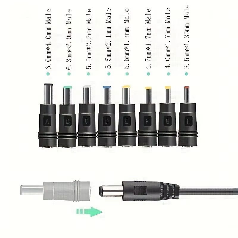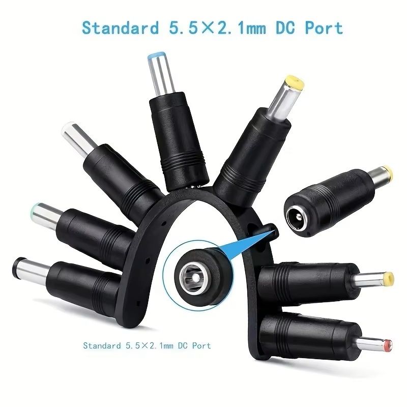 Цей якісний комплект універсальних перехідників призначений для живлення різних електронних пристроїв через DC роз'єм 5.5×2.1 мм. Він дозволяє легко адаптувати стандартний кабель живлення під різні розміри штекерів, що робить його ідеальним аксесуаром для ремонту, підключення та використання техніки у повсякденному житті.