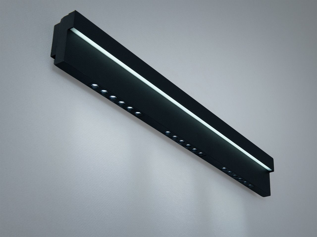 Бра Настінне 24W LED універсальне три режими "Linear Edge", Чорне (57 см) Сучасне архітектурне рішення для акцентного та основного освітлення житлових і комерційних зон площею до 10 м². Завдяки подовженому корпусу (57 см), ультратонкому профілю та комбінованій системі світлодіодів, це бра створює виразний світловий малюнок, стаючи стильним графічним акцентом у вашому інтер'єрі. Візуальний аналіз та дизайн Світильник виконаний у стилі суворого техно-мінімалізму. Корпус має видовжену прямокутну форму, виготовлений із металу та покритий якісною чорною матовою фарбою. Конструкція поєднує два типи LED-джерел: верхню матову лінію для дифузного (розсіяного) світла та нижній ряд із дванадцяти спрямованих лінз. При ввімкненні верхня смуга створює м’який світловий ореол на стіні, тоді як нижні лінзи формують чіткі, ритмічні геометричні промені. Чорний матовий корпус додає інтер'єру характеру та глибини, роблячи світловий потік візуально яскравішим та контрастнішим. Це ідеальний вибір для стилів лофт, хай-тек або футуристичний мінімалізм. Найкращі сценарії використання Подовжена форма та висока потужність (24 Вт) роблять модель універсальною: Для довгих коридорів та передпокоїв: Тонкий корпус (виліт від стіни всього 4 см) ідеальний для вузьких проходів, де важливо зберегти вільний простір. Над робочою зоною або дзеркалом: Забезпечує яскраве (1320 Лм) та рівномірне освітлення без відблисків. Для сходів: Спрямовані вниз промені лінз безпечно підсвічують шлях, створюючи при цьому стильний світловий декор. Для спальні: Може служити сучасним приліжковим бра, створюючи затишну атмосферу за допомогою теплих режимів світла. Чому ця модель вирішує ваші завдання Характеристика Ваша проблема або сумнів Як це працює на практиці 3 режими світла Важко обрати між затишним та робочим світлом. Ви змінюєте температуру (3200K / 4100K / 6500K) простим клацанням вашого звичайного настінного вимикача. Функція пам'яті: НІ Хочеться легко та швидко змінювати атмосферу. Світильник не запам'ятовує останній колір, що дозволяє циклічно перемикати режими при кожному ввімкненні. Постачається в зборі Не хочеться витрачати час на монтаж дрібних деталей. Бра повністю готове до роботи. Вам потрібно лише зафіксувати його на монтажну планку та під’єднати до мережі. Виліт від стіни 4 см Боязнь зачепити світильник плечем у вузькому проході. Це одна з найтонших лінійних моделей на ринку, яка максимально економить корисний простір. Технічні характеристики Параметр Значення Тип світильника Настінне LED бра (універсальне) Довжина 57 см Висота 8 см Відступ від стіни 4 см Робоча напруга 220 В (стандартна мережа) Загальна потужність 24 Вт Світловий потік 1320 Лм Площа освітлення 0 - 10 м² Температура світла 3200K (тепле), 4100K (нейтральне), 6500K (холодне) Пам'ять режиму Відсутня (циклічне перемикання) Матеріал каркасу Метал (Чорна матова фарба) Матеріал плафона Акрил Тип кріплення Монтажна планка (18 см) Вага 0.67 кг Гарантія 12 місяців Поради щодо встановлення Просте підключення: Світильник монтується на металеву планку довжиною 18 см, яка надійно фіксує довгий корпус до стіни. Основа довжиною 57 см повністю приховує місце виводу дротів. Прилад працює від звичайної мережі 220V. Безпека: Ступінь захисту IP20 означає, що світильник призначений виключно для сухих приміщень. Ми не рекомендуємо встановлювати його у ванних кімн