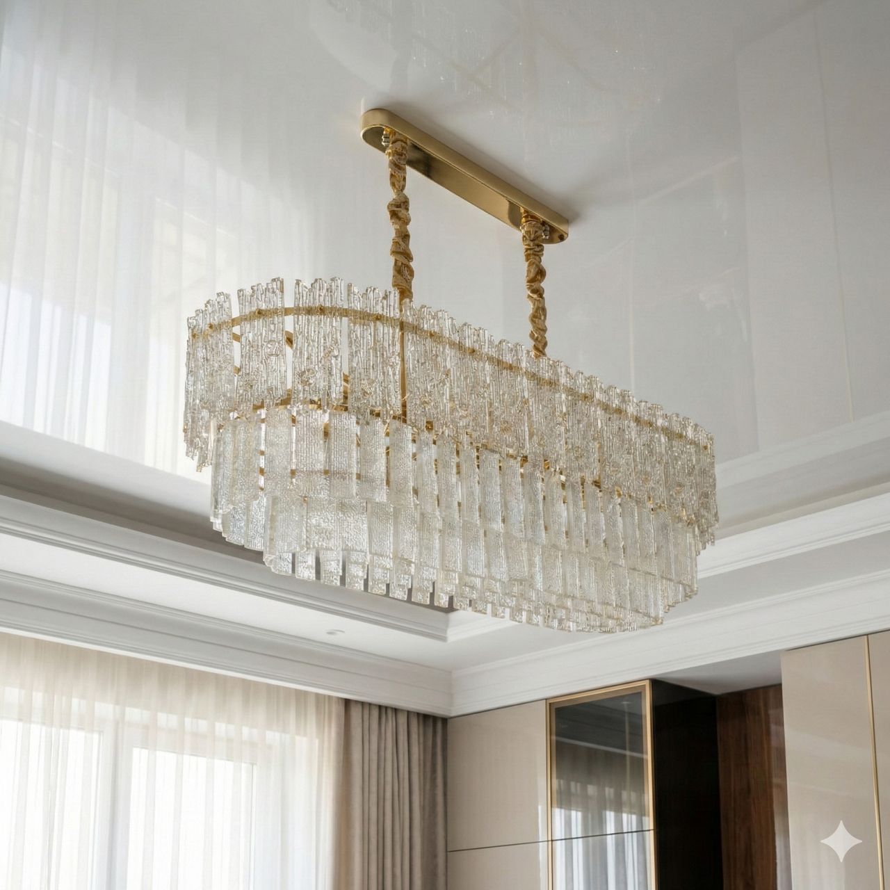 Ексклюзивне світлове рішення для основного освітлення просторих віталень, їдалень та залів площею до 20–25 м². Завдяки видовженій формі довжиною 82 см та системі на 10 точок освітлення, ця люстра створює величну атмосферу, стаючи головною окрасою класичного або сучасного інтер'єру.