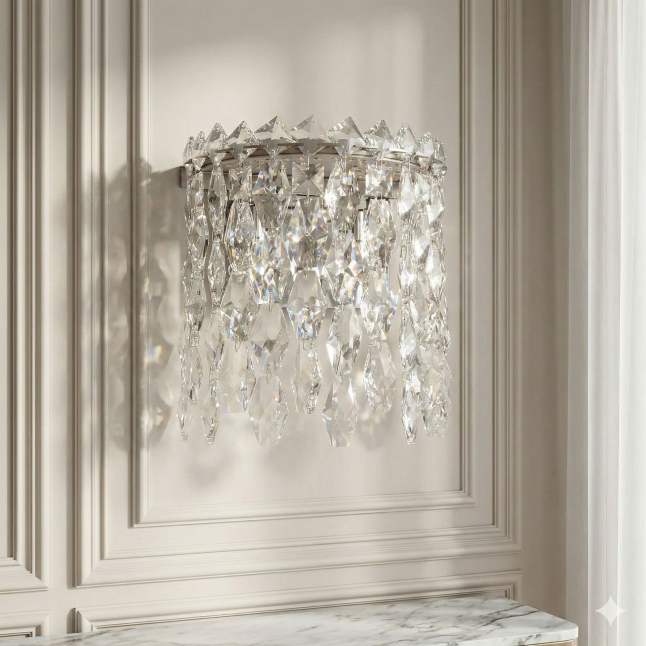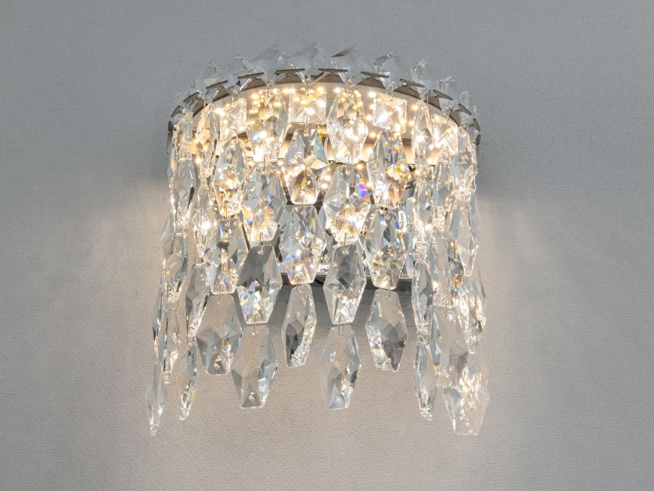 Хрустальне Бра 10W LED "Кришталевий каскад", Хром (24 см) Вишукане та компактне світлове рішення для акцентного освітлення інтер'єрів площею до 10 м². Завдяки поєднанню дзеркального хрому та багатоярусного кришталю, це бра створює атмосферу розкоші, наповнюючи простір іскристими відблисками та м'яким сяйвом. Візуальний аналіз та дизайн Дизайн світильника виконаний у стилі сучасної класики або ар-деко. Основа та каркас мають преміальне гальванічне покриття «дзеркальний хром», яке забезпечує ідеальний блиск та стійкість до корозії. Головна особливість моделі — каскад із високоякісних кришталевих підвісок. При ввімкненні світло заломлюється в гранях кришталю, створюючи на стіні «діамантовий» малюнок. Холодний відтінок металу підсилює чистоту скляних елементів, що робить бра ідеальним доповненням для інтер'єрів у світлих тонах, а також стилів хай-тек або неокласика. Витончений профіль (всього 2.1 см завширшки) додає приладу особливої легкості. Найкращі сценарії використання Компактні габарити (24 см заввишки) роблять модель універсальною: Для спальні: Встановлення пари бра біля ліжка забезпечить комфортне світло для відпочинку, замінюючи громіздкі настільні лампи. Для коридорів та передпокоїв: Створює гостинне світло, яке візуально розширює простір завдяки грі відблисків. Для дзеркал та туалетних столиків: М'яке розсіяне світло ідеально підходить для зон догляду за собою. Для вітальні: Використовується як декоративна підсвітка ніш або предметів мистецтва. Чому ця модель вирішує ваші завдання Характеристика Ваша проблема або сумнів Як це працює на практиці 3 режими світла Важко обрати між затишним та робочим світлом. Ви змінюєте температуру (3200K / 4100K / 6500K) простим клацанням вашого звичайного настінного вимикача. Функція пам'яті: НІ Хочеться легко змінювати атмосферу. Світильник не запам'ятовує останній колір, що дозволяє швидко перемикатися між режимами при кожному ввімкненні. Постачається в зборі Не хочеться витрачати час на складну збірку кришталю. Бра повністю готове до роботи. Вам потрібно лише зафіксувати його на монтажну планку та під’єднати до мережі. Хром-гальваніка Боязнь, що покриття швидко потьмяніє. Гальванічне нанесення набагато надійніше за звичайну фарбу: воно не тьмяніє та стійке до дрібних подряпин. Технічні характеристики Параметр Значення Тип світильника Настінне LED бра Висота 24 см Ширина 2.1 см Відступ від стіни 14 см Розмір основи 15 х 10 см Робоча напруга 220 В (стандартна мережа) Загальна потужність 10 Вт Світловий потік 550 Лм Площа освітлення 0 - 10 м² Температура світла 3200K (тепле), 4100K (нейтральне), 6500K (холодне) Пам'ять режиму Відсутня (циклічне перемикання) Матеріал каркасу Метал (Хром, гальваніка) Матеріал підвісок Кришталь / Скло Тип кріплення Монтажна планка (14 см) Вага ~1 кг Гарантія 12 місяців Поради щодо встановлення Просте підключення: Світильник монтується на металеву планку довжиною 14 см. Прямокутна основа (15х10 см) надійно приховує місце виводу кабелю. Прилад працює від звичайної мережі 220V та керується настінним вимикачем. Безпека: Ступінь захисту IP20 означає, що бра призначене для сухих приміщень. Ми не рекомендуємо встановлювати його безпосередньо у ванних кімнатах через відсутність захисту від вологи та пари. Часті запитання Запитання: Як перемикати режими світла? Відповідь: Режими змінюються за доп
