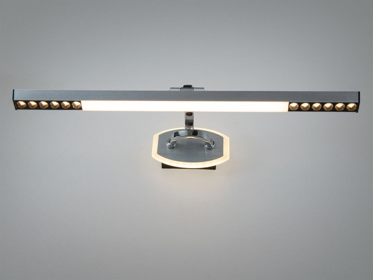 Підсвітка для дзеркал та картин 20W LED "Focus Line", Сіра (55 см) Світлове рішення для акцентного освітлення дзеркал, картин та художніх ніш площею до 10 м². Модель потужністю 20 Вт оснащена комбінованою оптичною системою та виносним кронштейном довжиною 23 см. Візуальний аналіз та дизайн Корпус світильника виготовлений із металу та вкритий сірою матовою фарбою. Кронштейн та елементи кріплення мають хромоване гальванічне покриття. Дизайн виконаний у техно-стилі з акцентом на функціональність. Світлова панель складається з двох типів елементів: центрального акрилового розсіювача для м’якої заливки та бічних блоків із спрямованими лінзами (по 7 шт. з кожного боку). Така конструкція забезпечує рівномірне фронтальне світло без різких тіней. Основа світильника обладнана додатковим контурним LED-підсвічуванням, що створює ореол на стіні навколо місця монтажу. Сценарії використання Конструктивні особливості моделі дозволяють застосовувати її у таких зонах: Над дзеркалом у ванній або холі: Великий відступ від стіни (23 см) дозволяє монтувати підсвітку над об'ємними рамами або глибокими поличками. Підсвітка картин: Спрямовані лінзи концентрують світло на полотні, не створюючи відблисків на склі. Для робочих кабінетів: Використовується для освітлення нагород, дипломів або робочих поверхонь. Стилі інтер'єру: Хай-тек, мінімалізм, лофт, сучасний модерн. Функціональні особливості Характеристика Задача Як це працює на практиці 3 режими світла Вибір температури освітлення. Перемикання між теплим (3200K), нейтральним (4100K) та холодним (6500K) світлом за допомогою настінного вимикача. Функція пам'яті: НІ Керування режимами. Світильник не запам’ятовує останній режим, кольори змінюються циклічно при кожному ввімкненні. Винос 23 см Освітлення об'ємних об'єктів. Дистанція від стіни дозволяє світлу обминати перешкоди (рами, полиці) та падати на об'єкт під правильним кутом. Гібридна оптика Комбіноване світло. Поєднання розсіяного світла (центр) та спрямованих променів (лінзи) забезпечує чіткість деталей. Технічні характеристики Параметр Значення Тип світильника Настінна LED підсвітка Довжина 55 см Висота 9 см Відступ від стіни 23 см Розмір основи 14 х 9 см Робоча напруга 220 В Загальна потужність 20 Вт Світловий потік 1100 Лм Площа освітлення до 10 м² Температура світла 3200K / 4100K / 6500K Матеріал каркасу Метал / Хром Тип кріплення Монтажна планка (8 см) Захист від вологи IP20 (тільки для сухих приміщень) Вага 0.83 кг Поради щодо встановлення Світильник постачається повністю зібраним. Монтаж проводиться на стандартну планку. Основа розміром 14х9 см дозволяє закрити місце виводу кабелю. Прилад працює від мережі 220V без зовнішніх блоків живлення. Безпека: Ступінь захисту IP20 передбачає використання у приміщеннях із нормальною вологістю. Встановлення у ванній кімнаті можливе лише за умови наявності примусової вентиляції та відсутності прямого потрапляння води. Дані верифіковані: Березень 2026