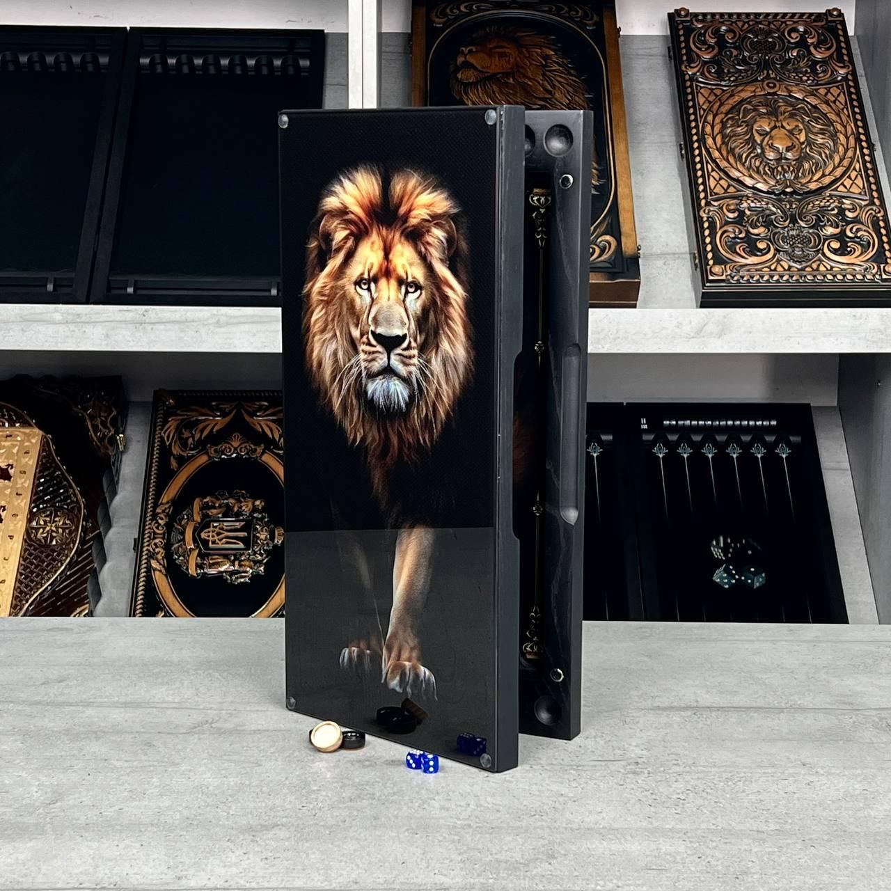 Нарди зі скла преміум-класу в дерев'яному корпусі Величний Лев 50х25 см Ці нарди — ідеальне поєднання природної сили дерева та сучасного візуального ефекту гартованого скла. Набір вагою 5.5 кг відчувається масивно та надійно, підкреслюючи статус свого власника. Глибоке зображення лева, нанесене за допомогою високоточного УФ-друку, символізує лідерство та впевненість, що робить цей комплект бездоганним подарунком для чоловіка, керівника або партнера по бізнесу. Особливості та переваги: Матеріали преміум-сегмента. Каркас виготовлено з натурального дерева твердих порід, що забезпечує довговічність та стійкість конструкції до деформацій. Скляне ігрове поле. Робоча поверхня виконана з надміцного скла, яке забезпечує ідеально гладке ковзання фішок та стійкість до появи мікроподряпин. Ефектний дизайн. Реалістичне зображення лева на зовнішній та внутрішній панелях зберігає насиченість кольорів десятиліттями завдяки технології прямого друку на склі. Авторська фурнітура. Надійна металева фурнітура золотистого кольору гармонійно доповнює темний корпус та забезпечує плавне відкриття дошки. Компактність та вага. Оптимальний розмір 50х25 см дозволяє зручно розмістити гру на столі, а вага 5.5 кг гарантує стабільність під час емоційних партій. Внутрішня частина нард спроєктована з урахуванням професійних вимог: бортики мають спеціальні лунки для зручного зберігання фішок, а ігрове поле прикрашене витонченими золотими орнаментами. Якщо ви шукаєте, де купити нарди ручної роботи, які стануть окрасою інтер’єру та надійним інструментом для гри, ця модель — найкращий вибір. Технічні характеристики: Параметр Значення Матеріал корпусу Натуральне дерево Матеріал поля Гартоване скло з УФ-друком Розміри (складені) 50 × 25 см Розміри (розкладені) 50 × 50 см Вага набору 5.5 кг Тематика Анімалістика (Лев) Комплектація Дошка, фішки, кубики (зари) Доставка та оплата: Ми здійснюємо швидку доставку по всій Україні через Нову Пошту. Кожен набір надійно упаковується у декілька шарів захисного матеріалу, щоб скляна поверхня дісталася до вас у бездоганному стані. Доступні варіанти оплати: онлайн на сайті, на розрахунковий рахунок або післяплата при отриманні. Додайте величі вашому дозвіллю. Замовляйте скляні нарди з левом вже сьогодні та отримайте замовлення найближчим часом. Залишилися питання? Телефонуйте нам. Наші менеджери завжди на зв'язку і готові відповісти на всі ваші запитання Адреса: Україна м. Стрий, вул. Заньковецької, буд. 2, другий поверх