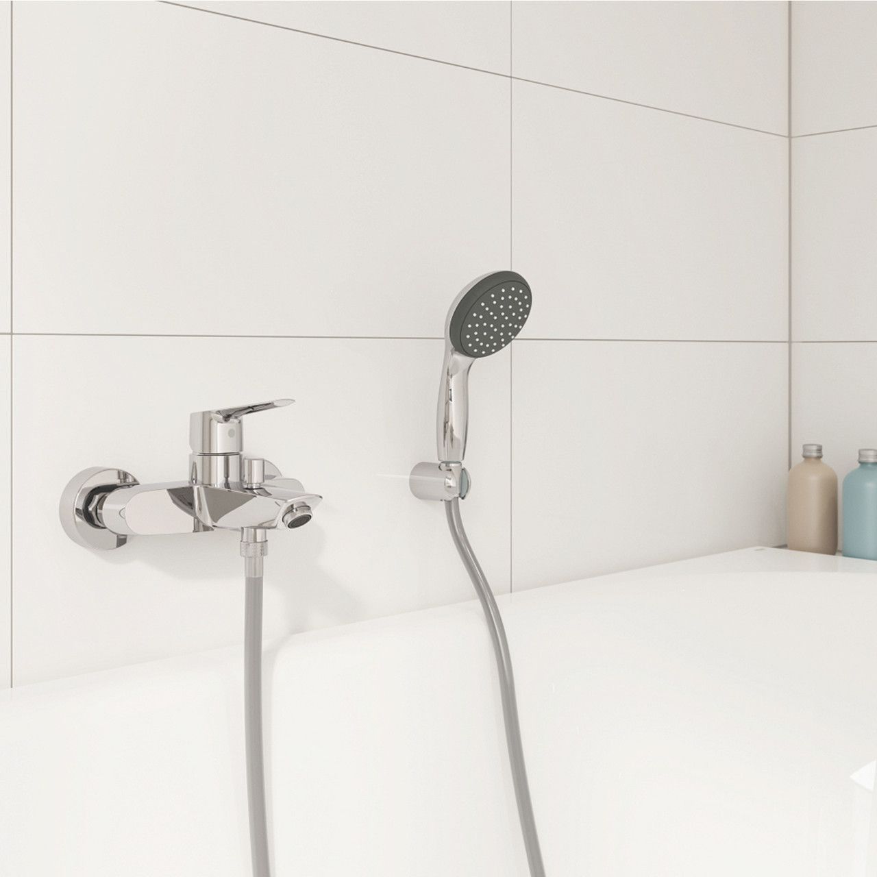 Змішувач для ванної Grohe QuickFix Start 24206002 виготовлений із високоякісної латуні з хромованою глянсовою поверхнею. Монтується настінним способом. Завдяки декоративним розеткам можна приховати всі похибки встановлення. Напір води та її температура регулюються поворотом важеля в потрібне положення. Перемикання ванна/душ здійснюється за допомогою дивертора.