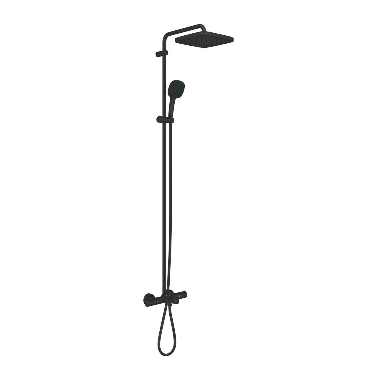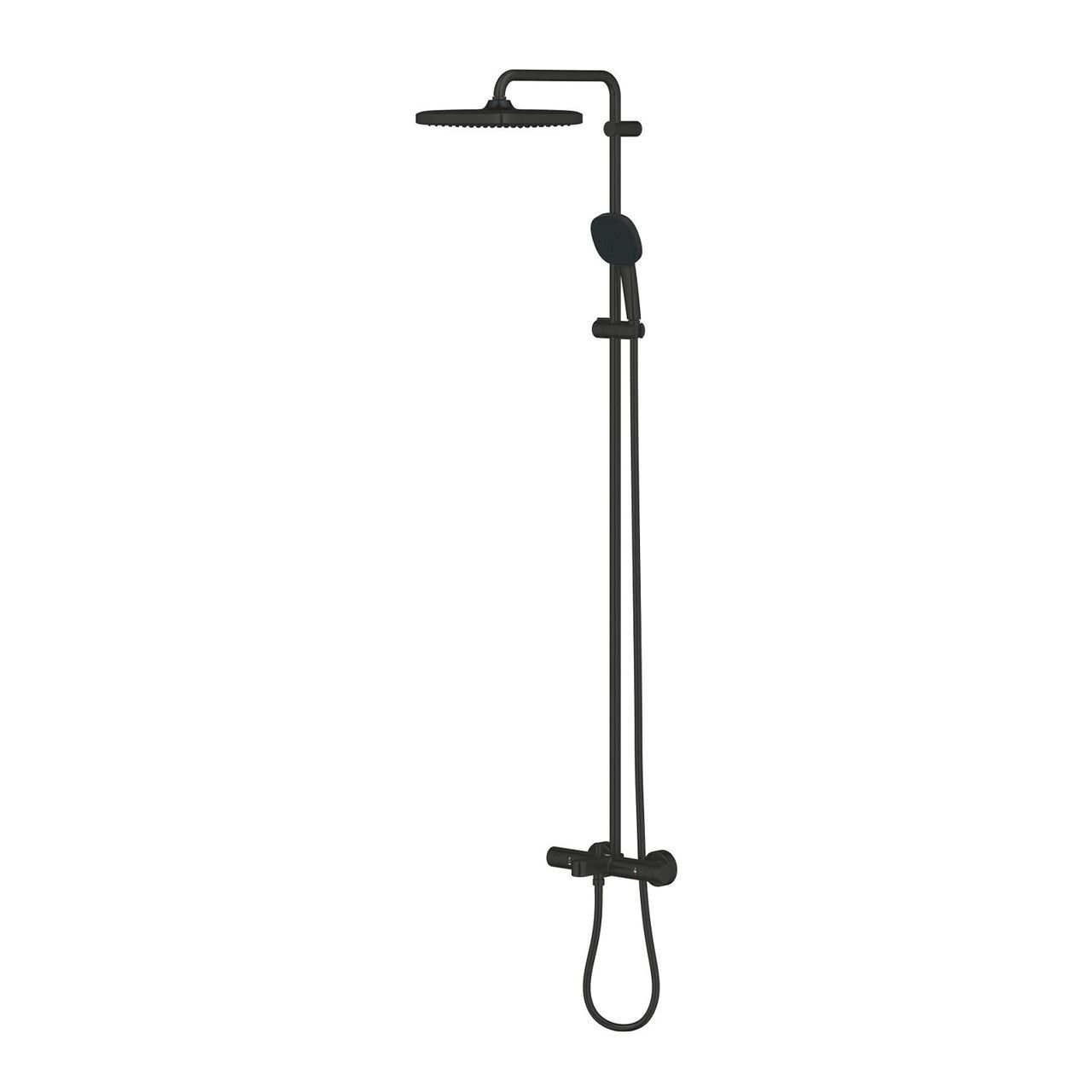 Душова система Grohe QuickFix Vitalio Comfort System 250 269842431 являє собою сучасне рішення для вашої ванної кімнати. Вона містить 390 мм горизонтальний поворотний душовий кронштейн, настінний термостат з аквадимером і верхній душ Vitalio Comfort 250. Верхній душ обладнаний режимом струменя Rain, чорною задньою кришкою і кульовим шарніром для регулювання кута нахилу до ±10°. Максимальна витрата води становить 8.5 л/хв за тиску 3 бари. Також у комплекті є вилив на ванну й окремий перемикач для ручного душу. Ручний душ Vitalio Comfort 110 має два режими струменя: Rain і Jet, а його висота регулюється за допомогою ковзного елемента. До комплекту також входить душовий шланг VitalioFlex Trend 1750 мм 1/2" x 1/2".
