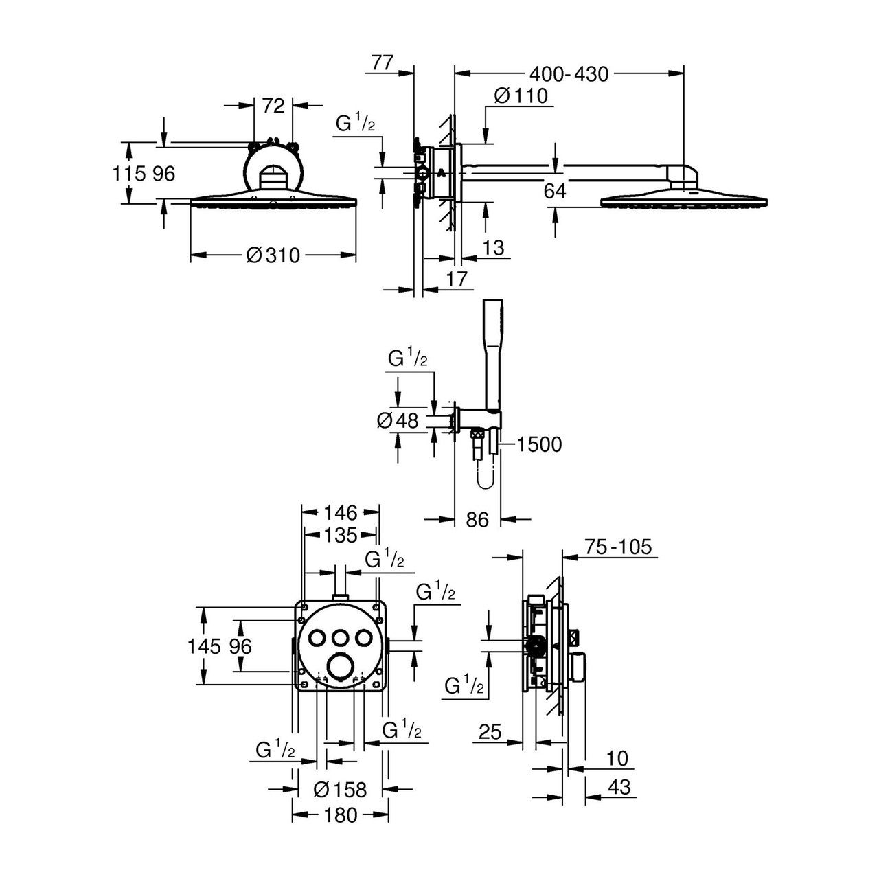 Ця душова система прихованого монтажу — ідеальне рішення для тих, хто цінує комфорт, безпеку та сучасний дизайн.