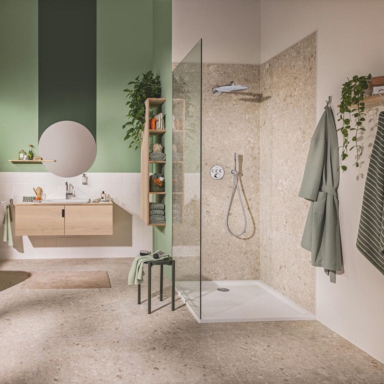Крім того, система обладнана технологією GROHE TurboStat, яка підтримує стабільну температуру води навіть у разі коливань тиску, усуваючи можливість різких перепадів температури. Захисна система GROHE SafeStop обмежує максимальну температуру води, забезпечуючи додатковий рівень безпеки, особливо для сімей із дітьми.