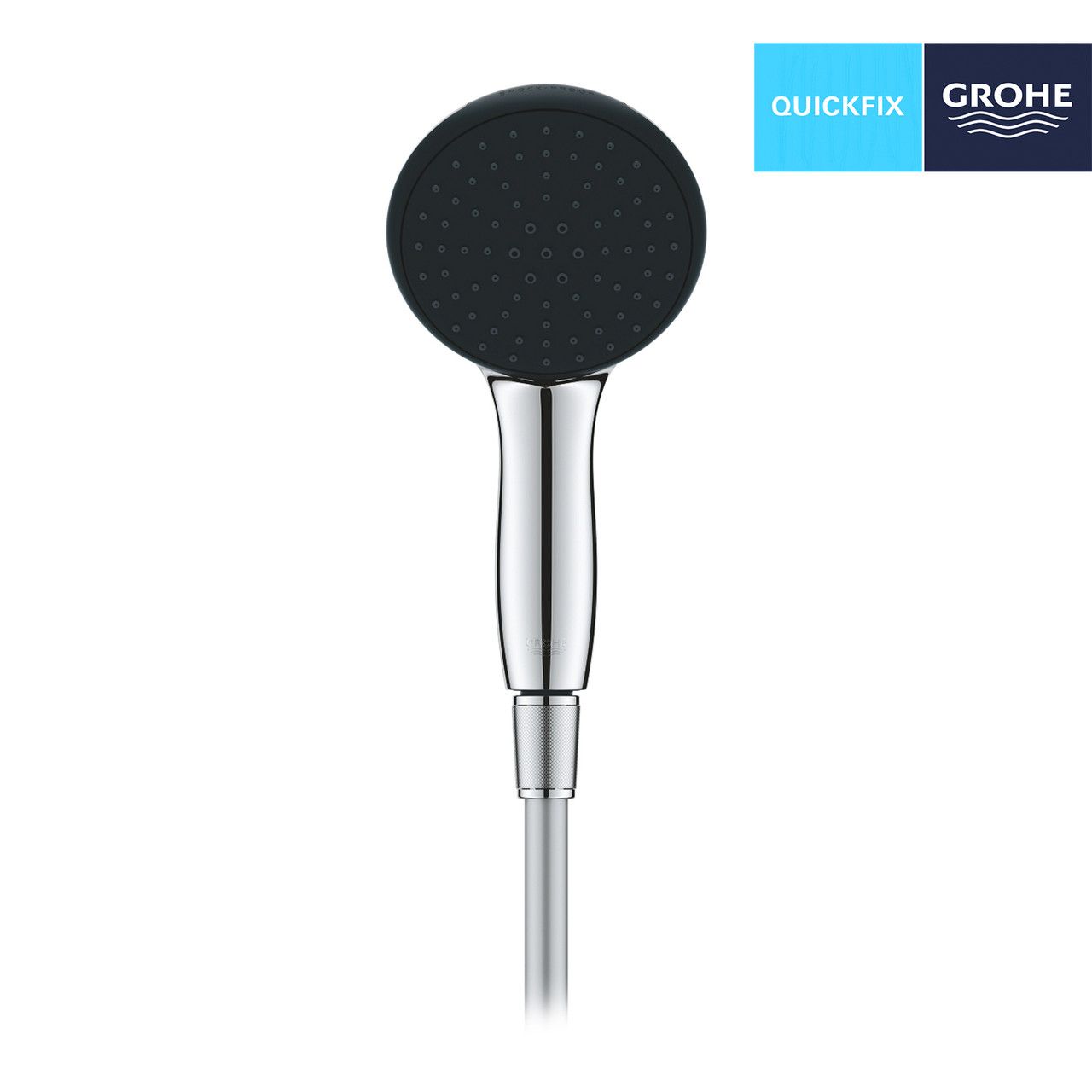 Система GROHE QuickFix дозволяє швидко під’єднати душ без інструментів. Універсальне кріплення підходить до всіх стандартних шлангів, а ProGrip-гайки забезпечують зручне закручування вручну.