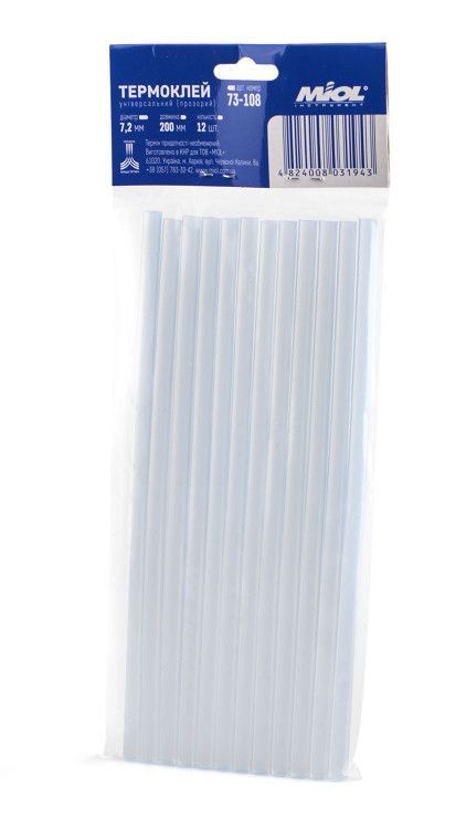 Клейові стрижні 7,2×200 мм, 12 шт. прозорі. Miol 73-108
