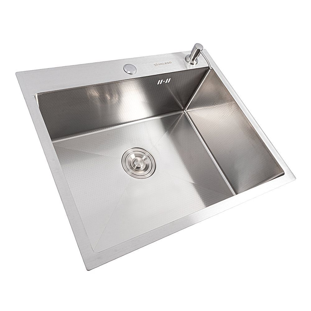 Кухонна мийка VALESO Handmade розміром 600х450х220 (товщина 3,0/1,5 мм + дозатор в комплекті)