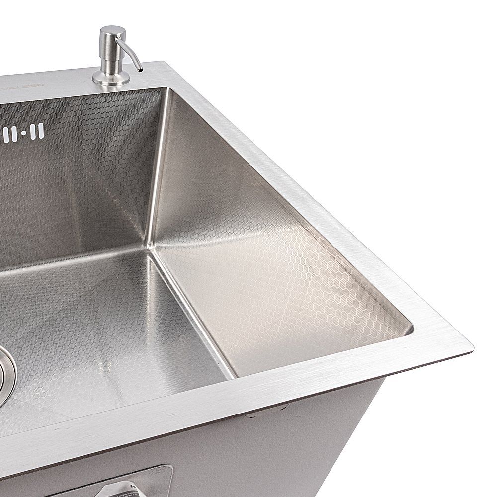 Кухонна мийка 60*50 нержавійка VALESO Handmade DECOR (сифон, дозатор, кріплення, 3,0/0,8)