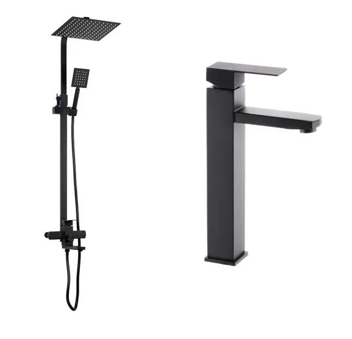 Душова колона з нержавіючої сталі Mixxus KUB-009-J Black + Змішувач для умивальника Mixxus KUB-001 High Black Німеччина