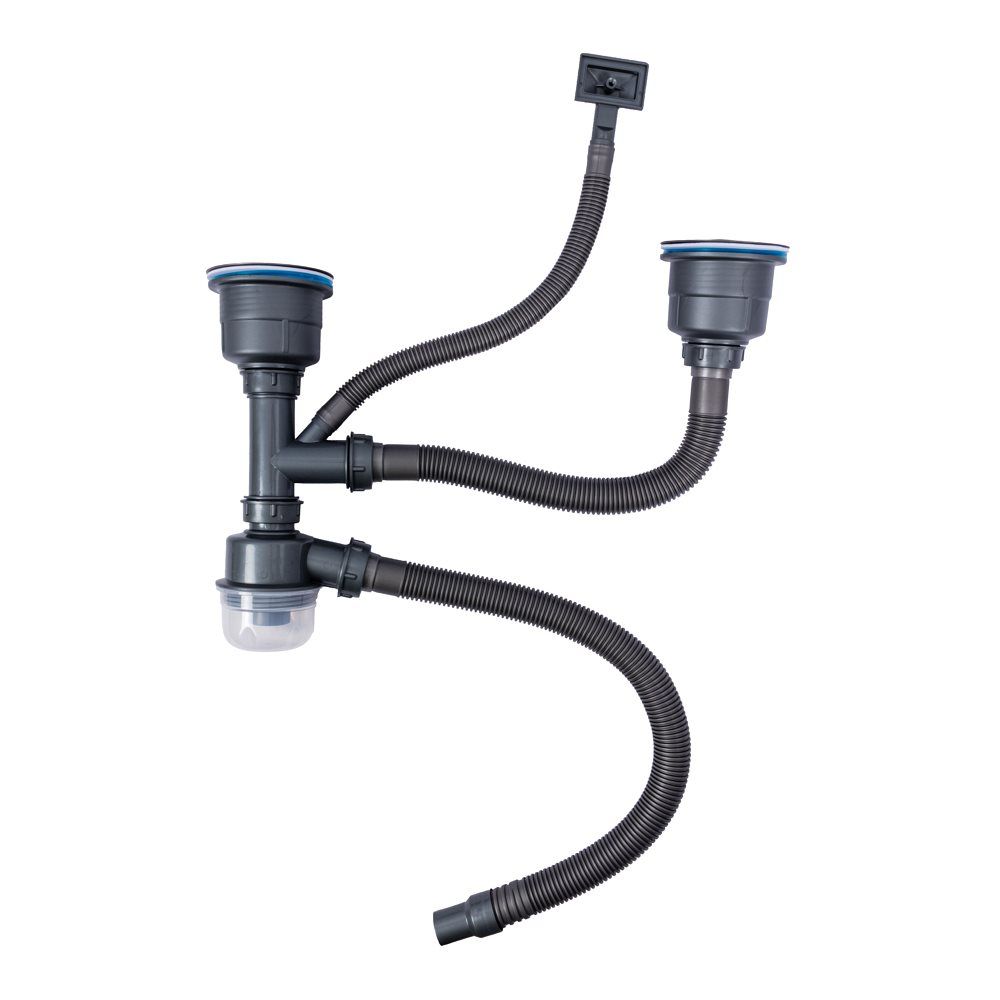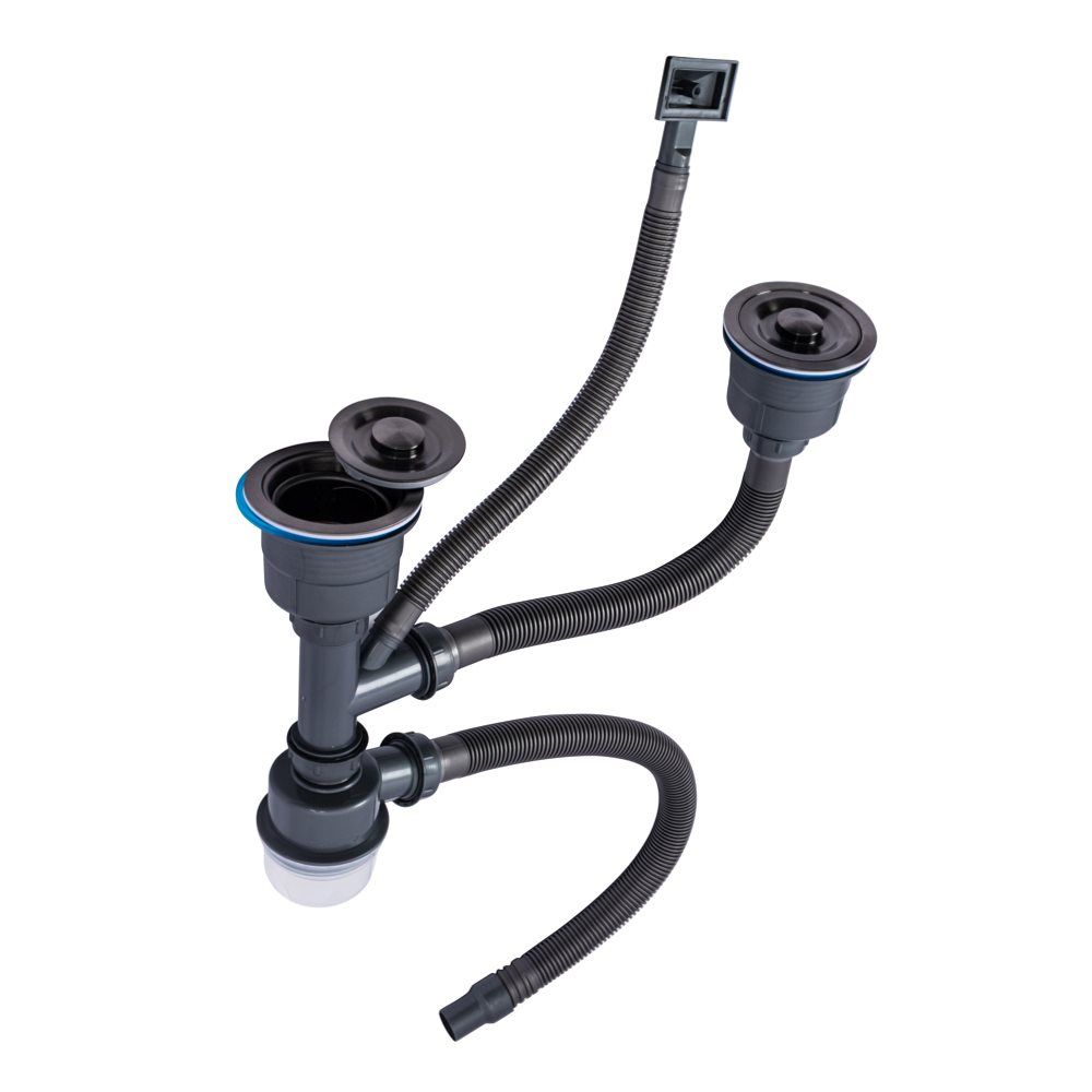 Сифон подвійний для мийок Handmade TM VALESO (верхівка чорна, арт. 905)