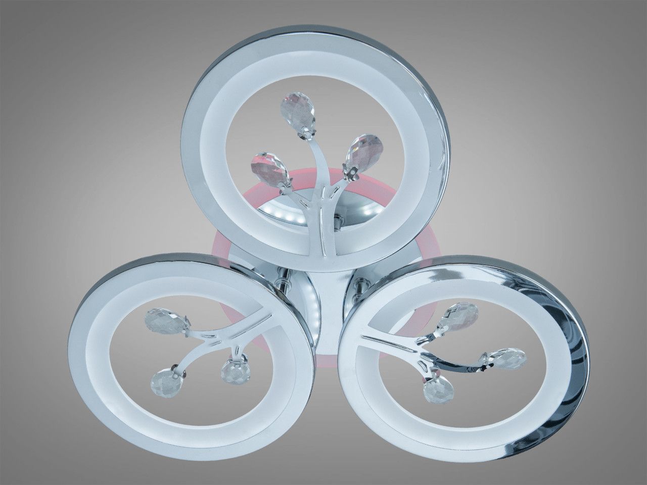 SMART LED люстра в спальню 50W "Crystal Branch Chrome", 3 кільця + 3-кольорова підсвітка (42 см)
