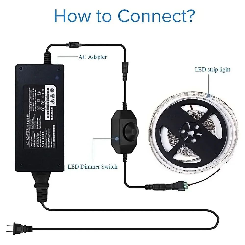Цей димер оснащений стандартними роз'ємами DC 5.5×2.1 мм (мама-тато), завдяки чому установка займає мінімум часу і не потребує складного монтажу чи паяння. Плавне безступінчасте регулювання яскравості дозволяє підібрати оптимальний рівень освітлення для різних завдань: декоративного підсвічування, робочої зони, вітрин, меблів, автомобілів або рекламних конструкцій.
