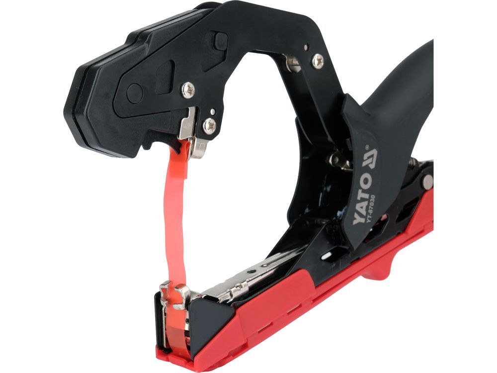 Одним рухом інструмент обмотує стебло стрічкою та закріплює його скобою, створюючи стабільну, але гнучку опору.