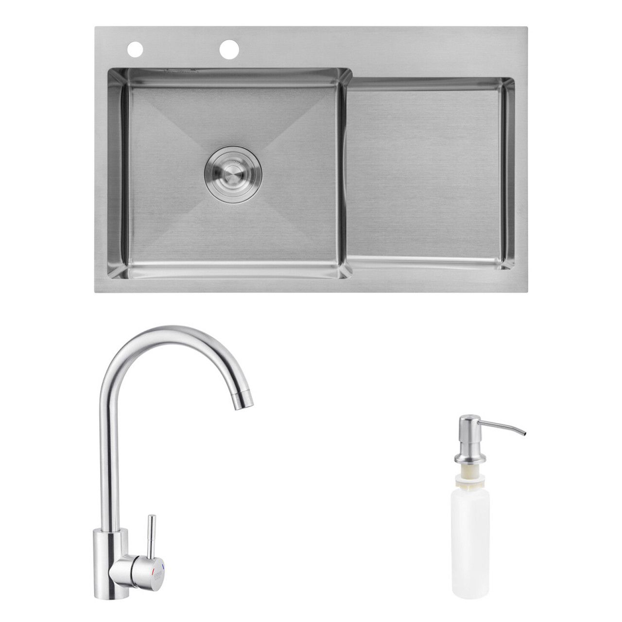 Комплект кухонна мийка Kroner Gebürstet-7848LHM + змішувач Edelstahl Klassisch-ESG035 + дозатор Spender-016