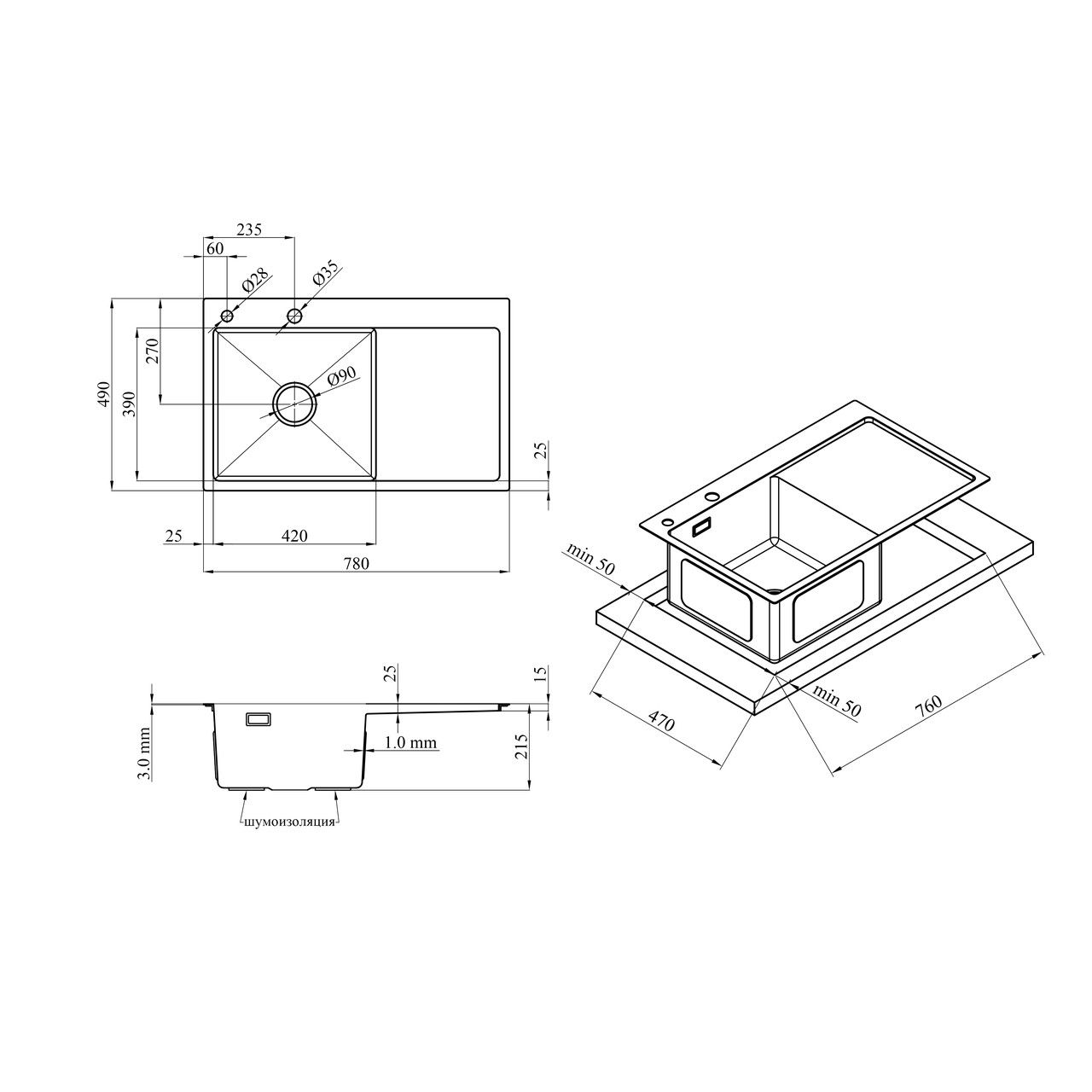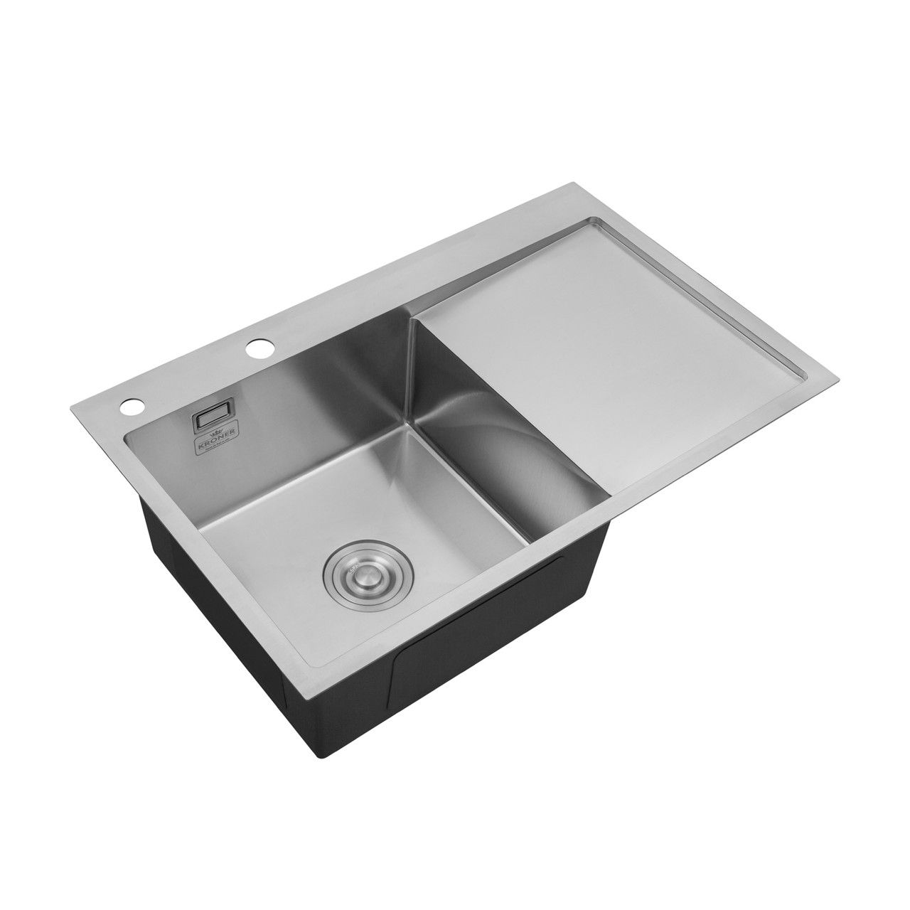 Комплект кухонна мийка Kroner Gebürstet-7849LHM + змішувач Edelstahl Klassisch-ESG03815BLK + дозатор Spender-016