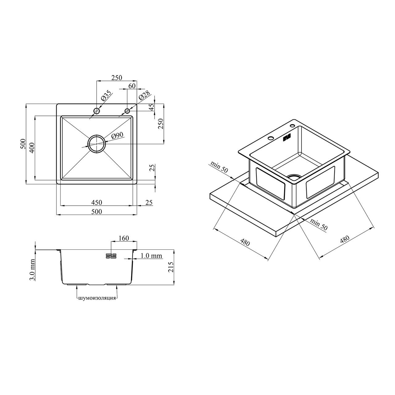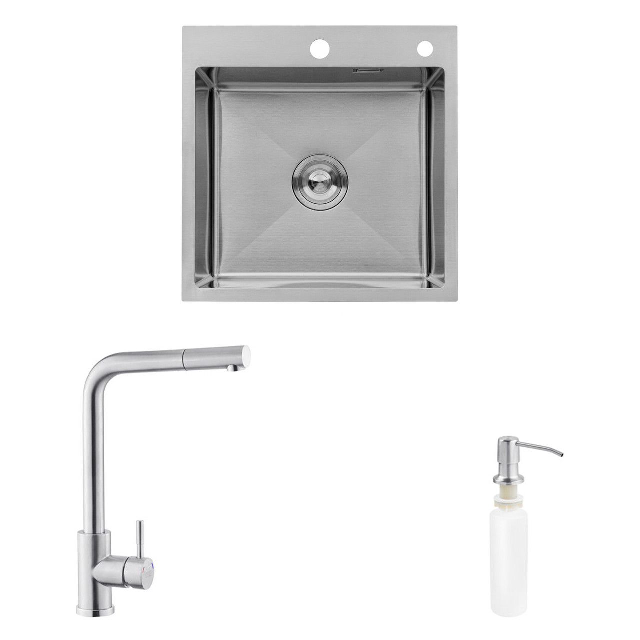 Комплект кухонна мийка Kroner Gebürstet-5050HM + змішувач Edelstahl Klassisch-ESG03917 + дозатор Spender-016